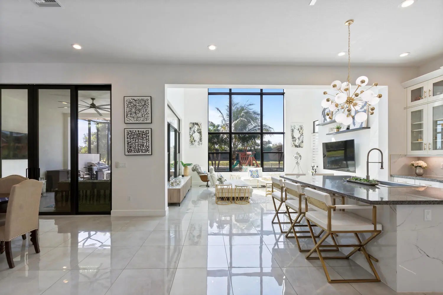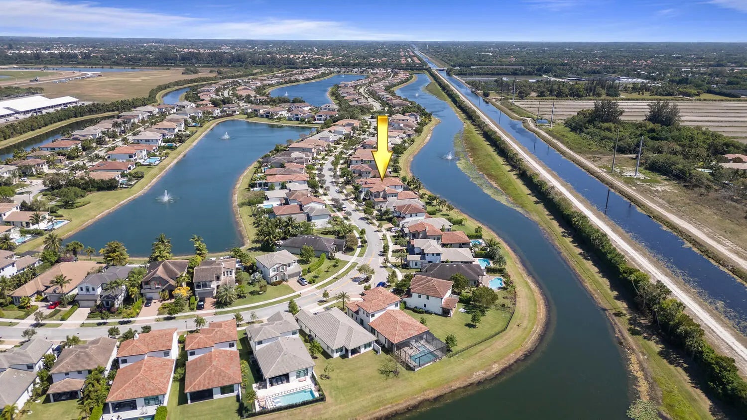Welcome to this stunning 2 story, lakefront luxury edition home in the highly sought-after and gated ''Palm Meadow Estates''. This exquisite residence offers 4,100 living sqft. of beautifully designed living space, 5 spacious ensuite bedrooms, 5 baths & powder room, 3 car lift compatible garage. The chef's dream kitchen boasts a massive 9' x 6' island, high-end appliances, and double oven. Impressive great room with expansive windows & soaring ceilings. Spacious screened in covered lanai with summer kitchen setup. Community amenities include 2 pools, Tennis & pickleball, Gym, Aerobics Studio, Basketball & Playroom! Location, Location, Location!! Mins to Tpke, A-Rated Schools, Beach, Parks, Shopping, Restaurants & Entertainment! True South Florida Luxurious Resort Style Living at Its Best!