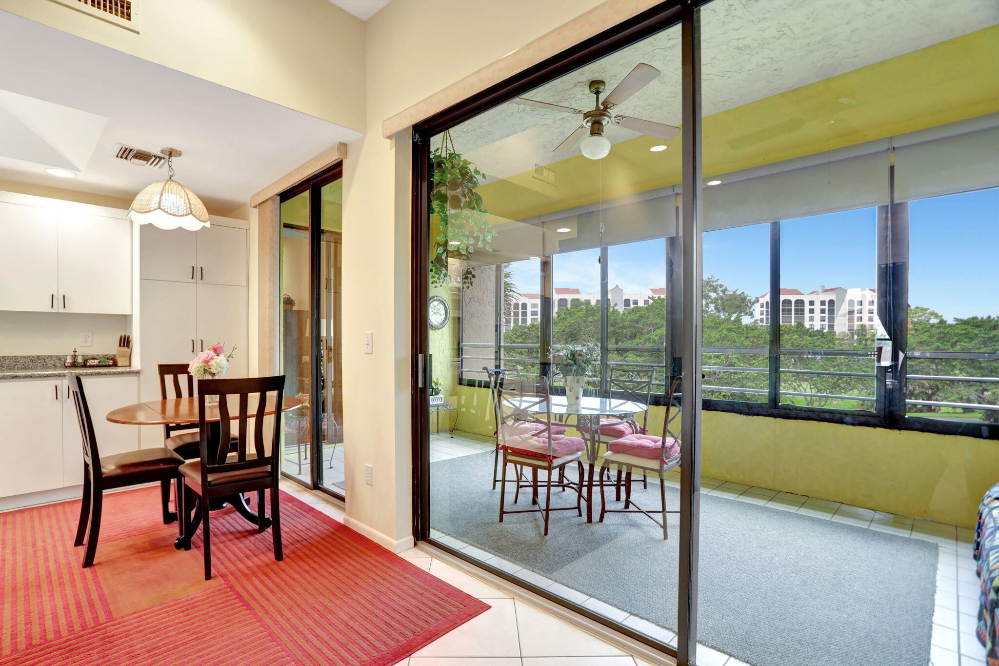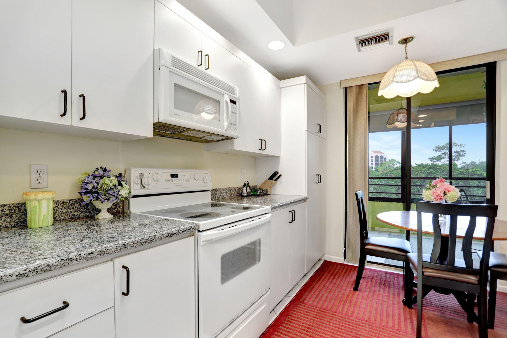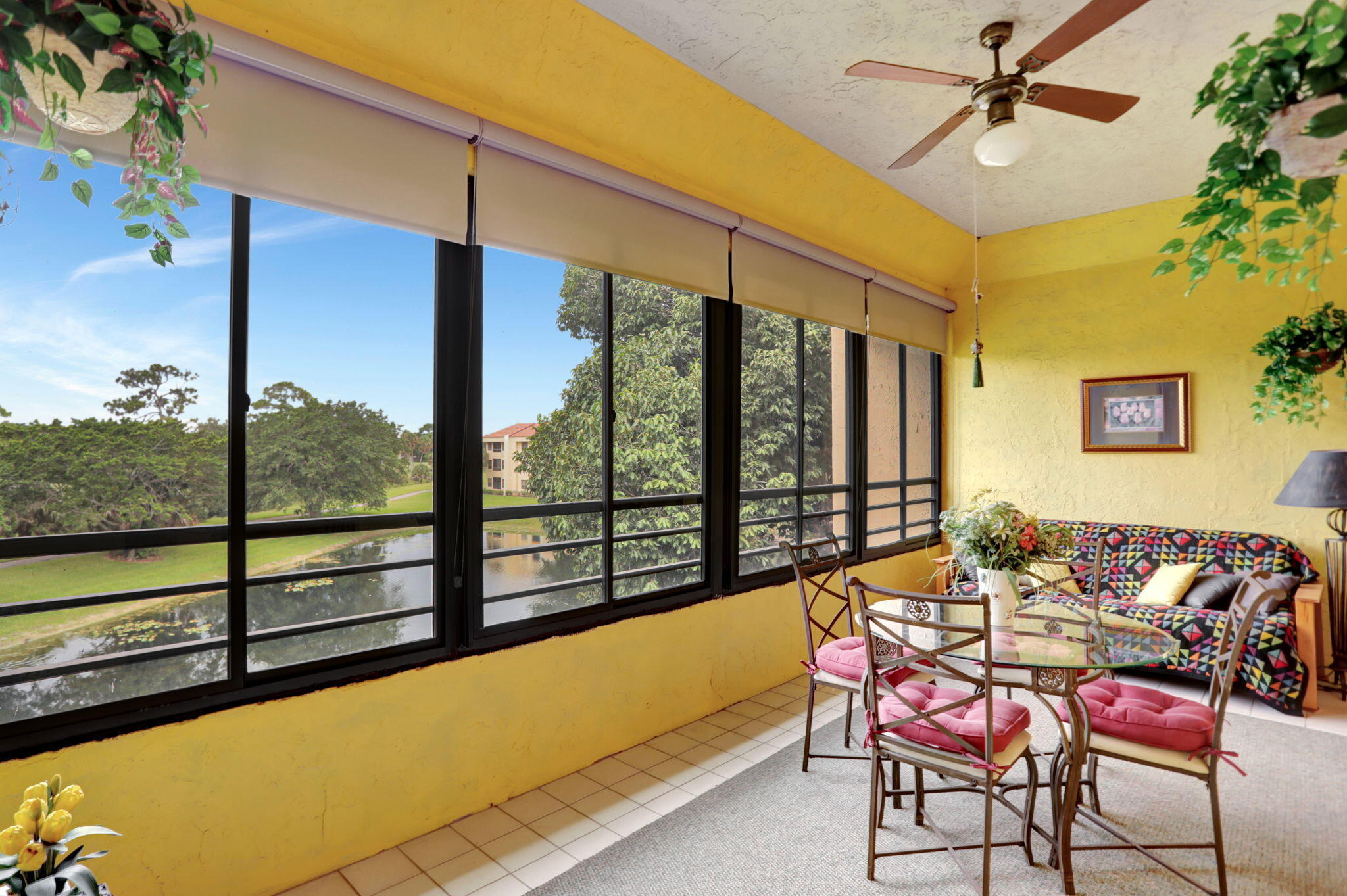 Spend the season in this lovely 2 bedroom 2 bath condo with pretty lake views from enclosed patio. Living and master bedroom have flat screen TV's. King size bed in master bedroom and full size in guest bedroom. Kitchen has eat in area and updated appliances with granite counters. Condo recently painted, replaced dishwasher and laminate flooring in both bedrooms. Living room furniture to be replaced! Top floor condo in elevator building or close to stairs. Community has 2 pools, 2 tennis courts and small club house.