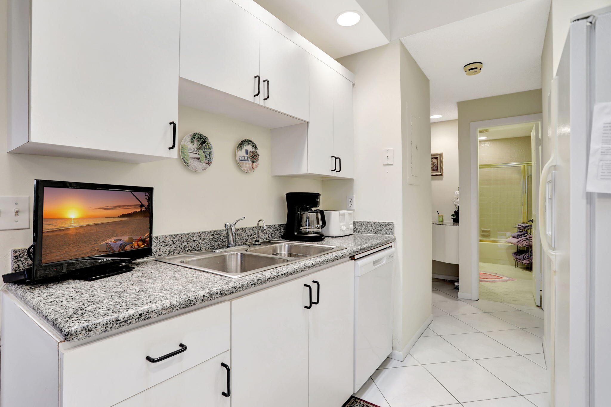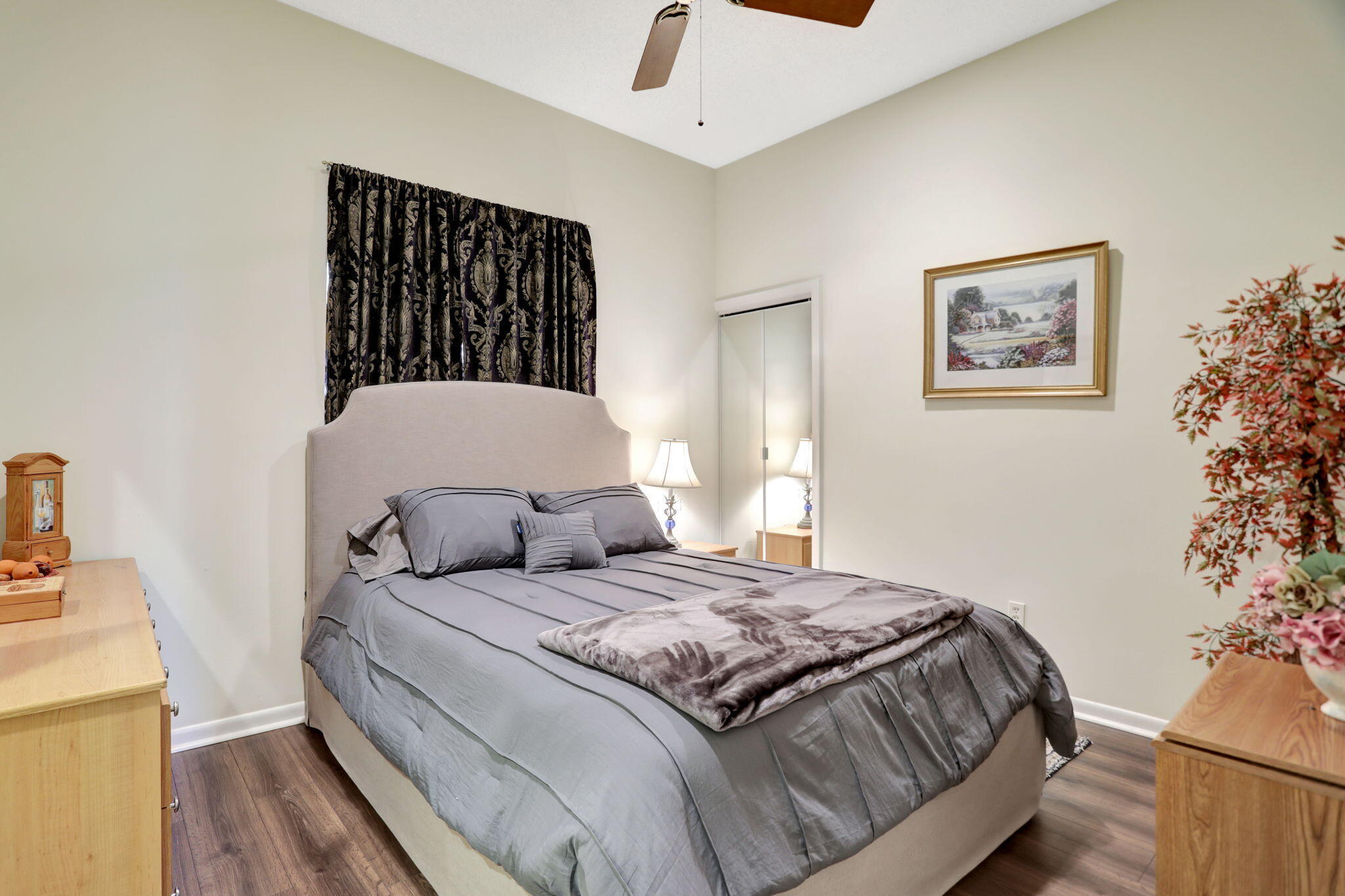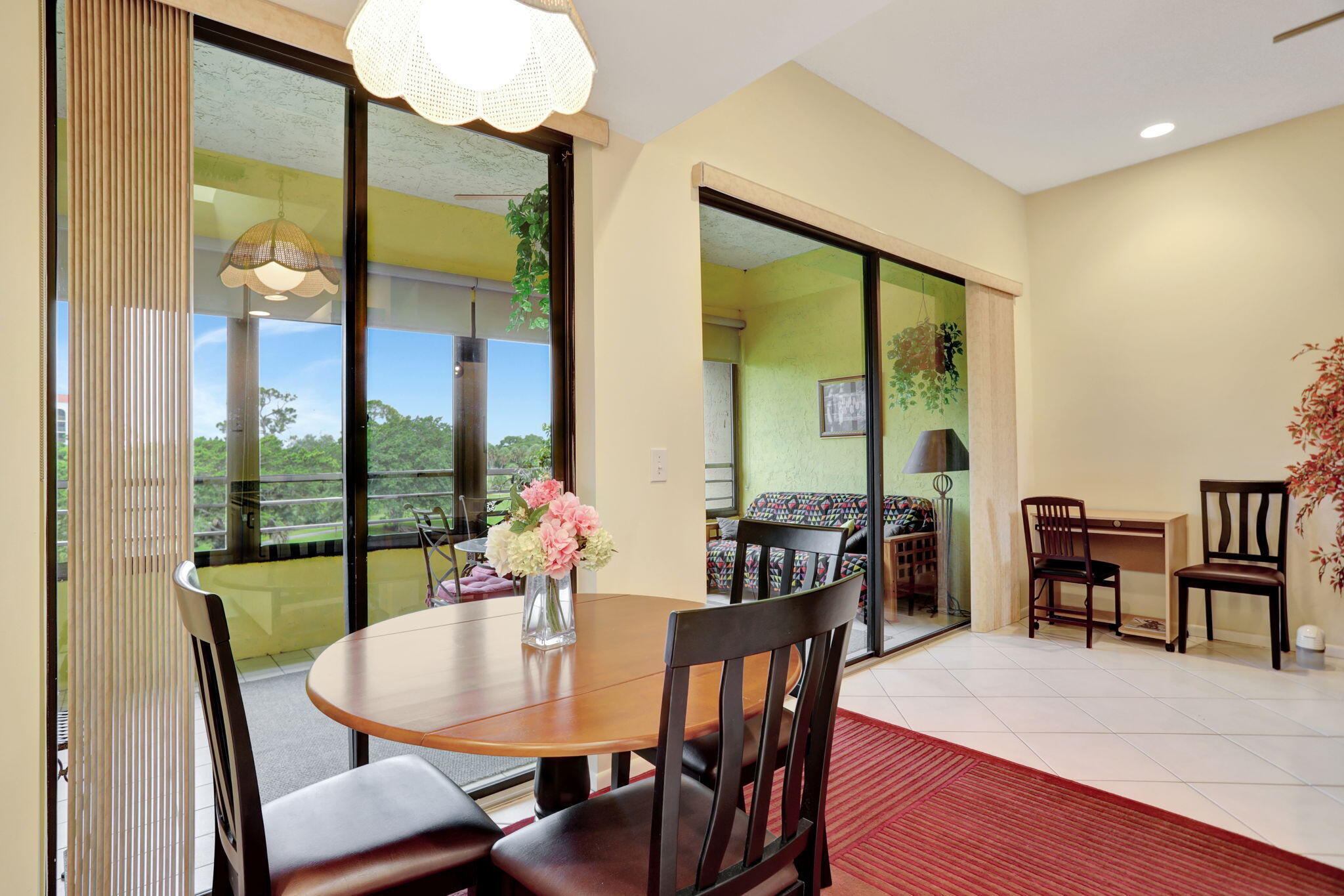 Spend the season in this lovely 2 bedroom 2 bath condo with pretty lake views from enclosed patio. Living and master bedroom have flat screen TV's. King size bed in master bedroom and full size in guest bedroom. Kitchen has eat in area and updated appliances with granite counters. Condo recently painted, replaced dishwasher and laminate flooring in both bedrooms. Living room furniture to be replaced! Top floor condo in elevator building or close to stairs. Community has 2 pools, 2 tennis courts and small club house.