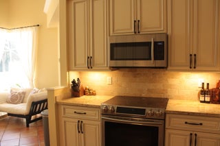 Elegant 4-bedroom home nestled in the gated community of Lake Charles, boasting a heated pool, renovated kitchen, impact windows, stainless steel appliances, water softener, new water heater, and freshly painted exteriors and interiors. This residence seamlessly combines modern amenities with stylish upgrades for a truly exceptional living experience.