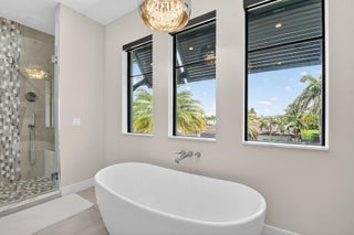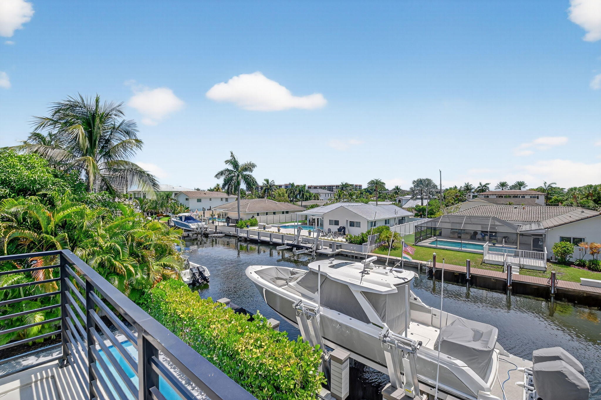 SIGNIFICANT PRICE ADJUSTMENT! A true must see. This stunning Contemporary Eastern Exposure Home, nestled in the highly coveted Bel-Marra waterfront community, offers custom design finishes and unparalleled waterfront living -- a true paradise! From the moment you enter, you'll be captivated by the breathtaking water views that set the tone for the entire home.The open-concept floor plan boasts two bedrooms (one currently used as a game room with wet bar) and a full bath on the 1st floor. Step outside to discover an oasis with a saltwater-heated pool and spa, complemented by a fully equipped summer kitchen. The 80-foot dock, complete with a lift and additional twin jet-ski dock, ensures endless water activities and effortless access to the water.On the 2nd floor, retreat to the luxurious Owner's Suite, accessible via elevator offering floor-to-ceiling windows that frame stunning views. The suite also features custom-built closets and a spa-inspired bathroom with dual water closets, dual showers, a large freestanding soaking tub, a makeup area, and abundant storage. Two additional guest suites, each with their own ensuite bathrooms, provide ultimate privacy and comfort. An additional family/flex room with a balcony rounds out the second floor, ideal for relaxing or entertaining. This home is designed for convenience with two laundry rooms (one on each floor) and cutting-edge Control4 whole-home audio, video, and security technology. Perfectly located just minutes from I-95, Boca Inlet, and open ocean access, it offers easy access to top shopping destinations like Whole Foods, Trader Joe's, Mizner Park, as well as the vibrant Atlantic Avenue, Spanish River Beach, and more. This is truly a one-of-a-kind waterfront masterpiece!