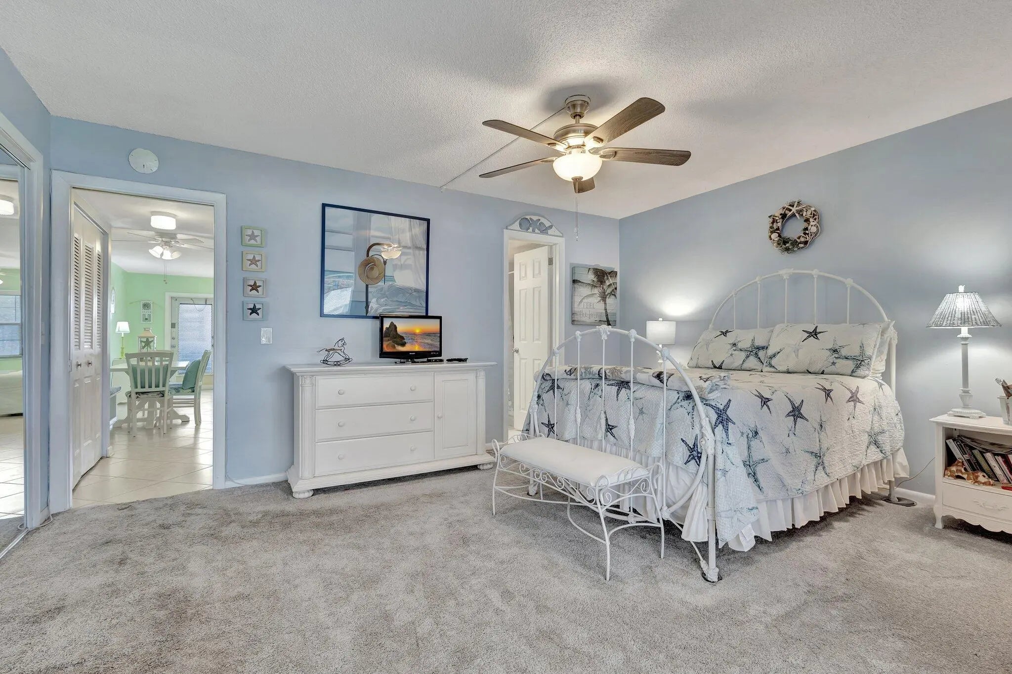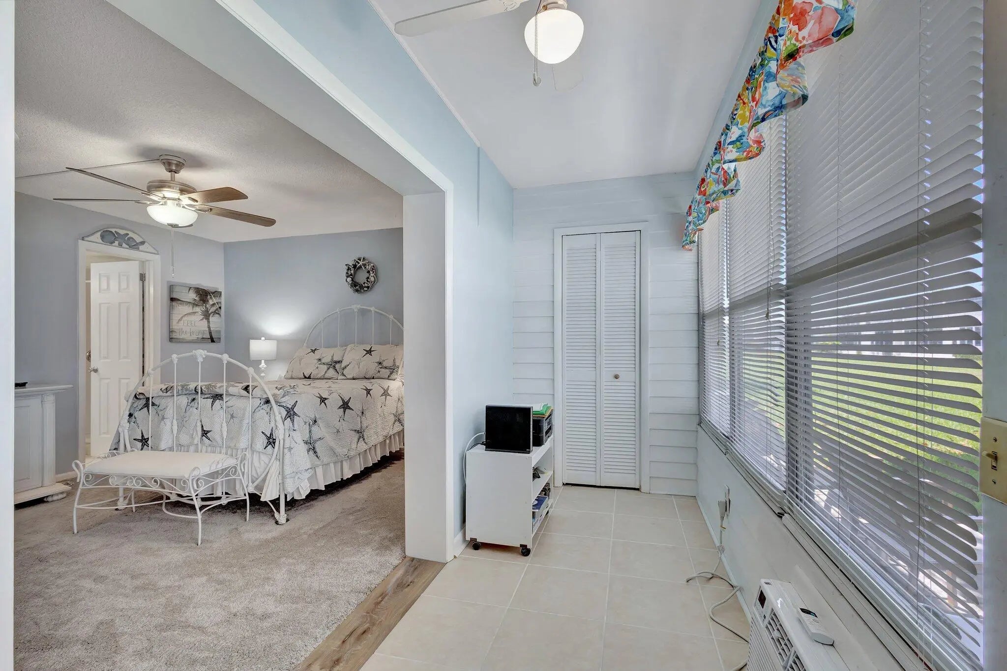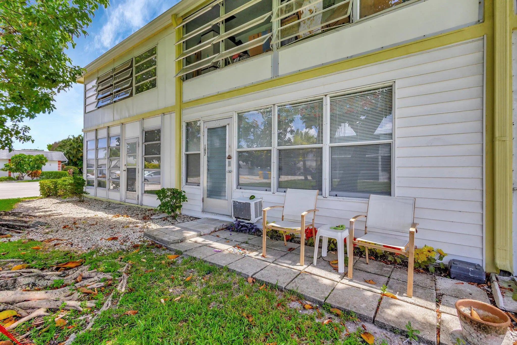 This bright & charming renovated coastal styled 1 bedroom 1 1/2 bath ground floor condo is ready for a new owner to make it their new home. Sheffield E is a well maintained building that has a lovely patio for the residents to enjoy. The Kitchen has been updated with white cabinets & appliances. Both bathrooms have been renovated. The full bath is also located in the Master bedroom & the half bath is located in the hall across from the pantry/linen closet. The Florida room is located off of the Master bedroom and has a additional storage area, door that leads to a back paver patio to relax & enjoy. Century Village West Palm Beach is an active 55+ Gated Community which is located close to Shopping, Restaurants, Airport, Golf, Boating, Tennis, Turnpike Hwy, Beaches, Fishing & so much more