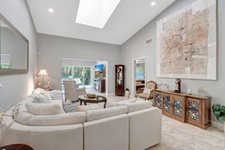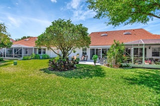 Step into refined South Florida living with this impeccably renovated 2-bedroom, 2-bathroom villa, complete with a versatile den. From the moment you arrive, you'll be captivated by the attention to EVERY detail and luxurious upgrades throughout. No expense was spared in creating a space that is both stylish and serene. Soaring vaulted ceilings and additional lighting enhance the open, airy ambiance. Hurricane IMPACT windows and doors provide peace of mind year-round. The home features tile throughout and vinyl flooring in bedrooms, creating a clean, modern foundation for any design style. Freshly painted interiors are complemented by designer fixtures and custom doors.The stunning white kitchen has been fully extended and thoughtfully renovated with NEW stainless-steel appliances, and ample cabinet space. The guest bathroom has been updated, while the expansive primary suite offers a true retreat with an indulgent spa-like bathroom. Enjoy the Florida lifestyle outdoors with a beautifully landscaped serene and private backyard, spacious custom tiled patio, and an extended paver double driveway. The one-car garage features a finished epoxy floor, adding function and polish to this exceptional space. Ideally situated just a short stroll from the soon-to-be-renovated Palm Isles clubhouse, this villa offers convenient access to an exciting array of amenities. Residents can enjoy indoor and outdoor pools, a state-of-the-art fitness center, pickleball and tennis courts, a Performing Arts Theatre, billiards, card rooms, and a charming café open for breakfast and lunch. This exquisite villa is the perfect blend of elegance, comfort, and 55+ active living. Don't miss your chance to call a truly exceptional home in the heart of Palm Isles - YOURS!