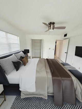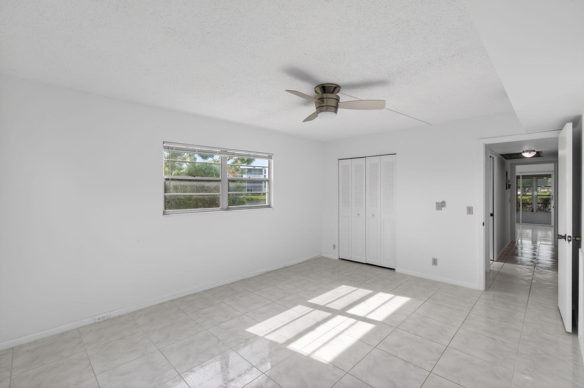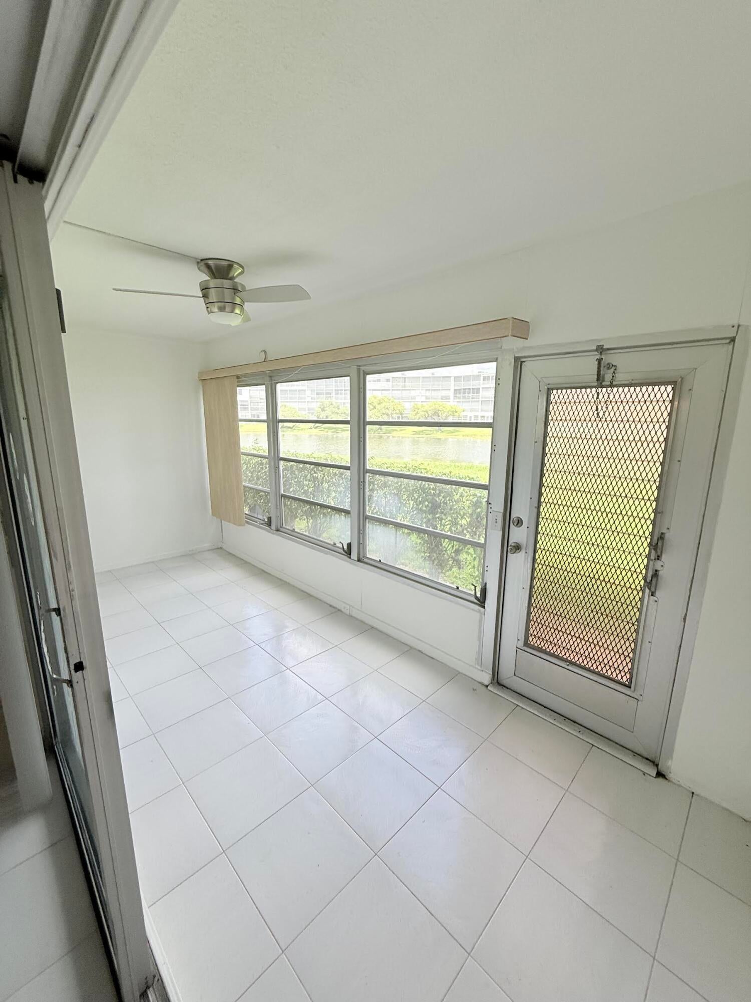 Large corner unit, first floor, spacious 2 bedrooms and 2 full bath condo with water view. Livable space of 1,198 sq ft plus an additional 171 sq ft of a finished screened porch for a total of 1,369 sq ft. Beautifully renovated- it is ready for immediate move in. Great parking space included. Conveniently located. Rare gem that is a must have. Water, basic cable and internet included.Fabulous Club House, indoor and outdoor pool, tennis, 12 Pickleball courts, fully equipped gym, shows, movies, classes, bingo, card rooms and trips. Buses take you to restaurants and shopping.