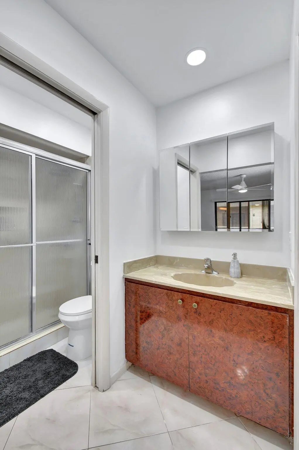 Just listed Deluxe 1 Bedroom/1.5 Bath In the Luxurious Piedmont Section of Kings Point 55+ Golf and Country Club. This CBS building has a real elevator and is surrounded by water and golf greenery. Ceramic Tile flooring throughout the living area. Large Updated kitchen boasts stainless steel appliances, updated cabinets, and quartz countertops. This condo has been freshly painted and is move-in ready! Updated quest bathroom! Oversized bedroom features walk in shower, a walk in closet and custom shelving! Oversized enclosed patio features garden view with storage closet. Kings Point offers two 18 Hole Golf Courses, indoor/outdoor pools, tennis courts, theater, Cafe and Bistro. Minutes from Downtown Delray! Beaches, and much more!! This condo is a must see!!