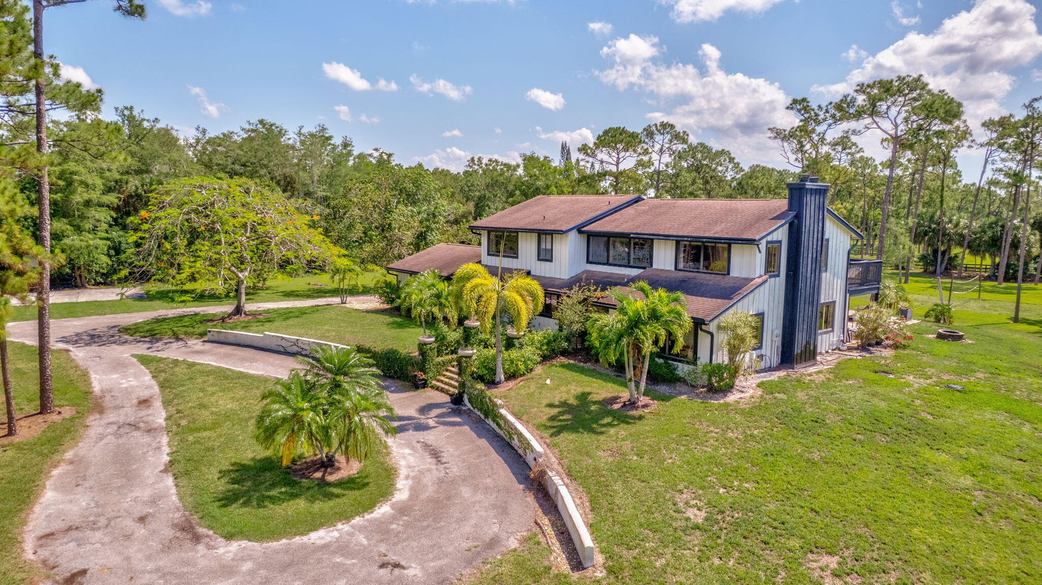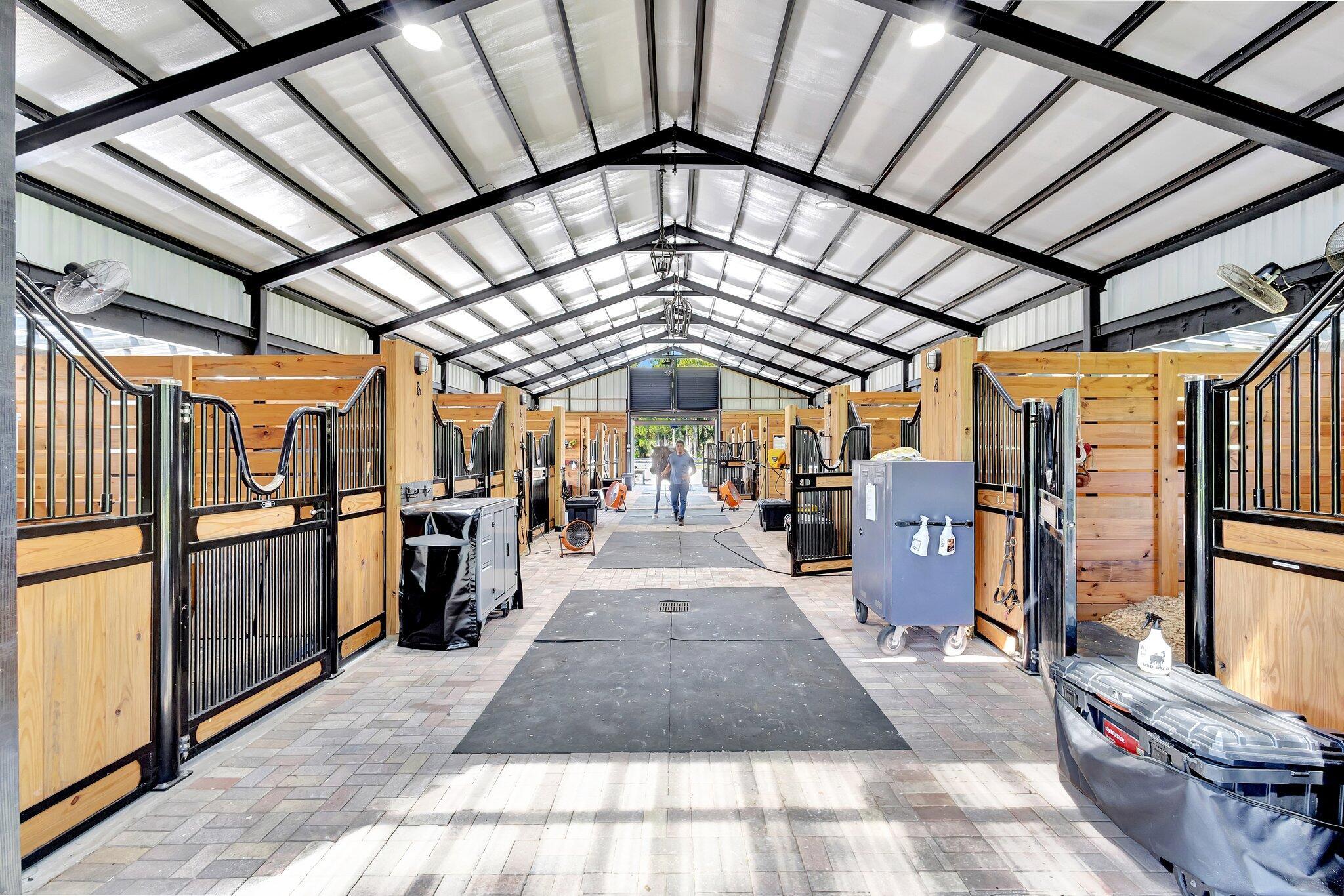 Nestled on 5 serene acres, this estate offers a country feel with modern convenience. Featuring 5 bedrooms, 3.5 baths, and a large open kitchen perfect to create long lasting memories with family and friend with fresh, neutral tones, the home is filled with natural light and tile-like wood floors throughout. Long day at work , come and relax in the stunning main suite boasts a sitting area and private balcony overlooking the barn, pond, paddocks, and crystal-clear pool. Enjoy Florida's lush fauna from the spacious patio. With 7 stalls, this property is perfect for equestrians. Located in a 24-man gated community, close to top schools, shops, major roads, and highways.