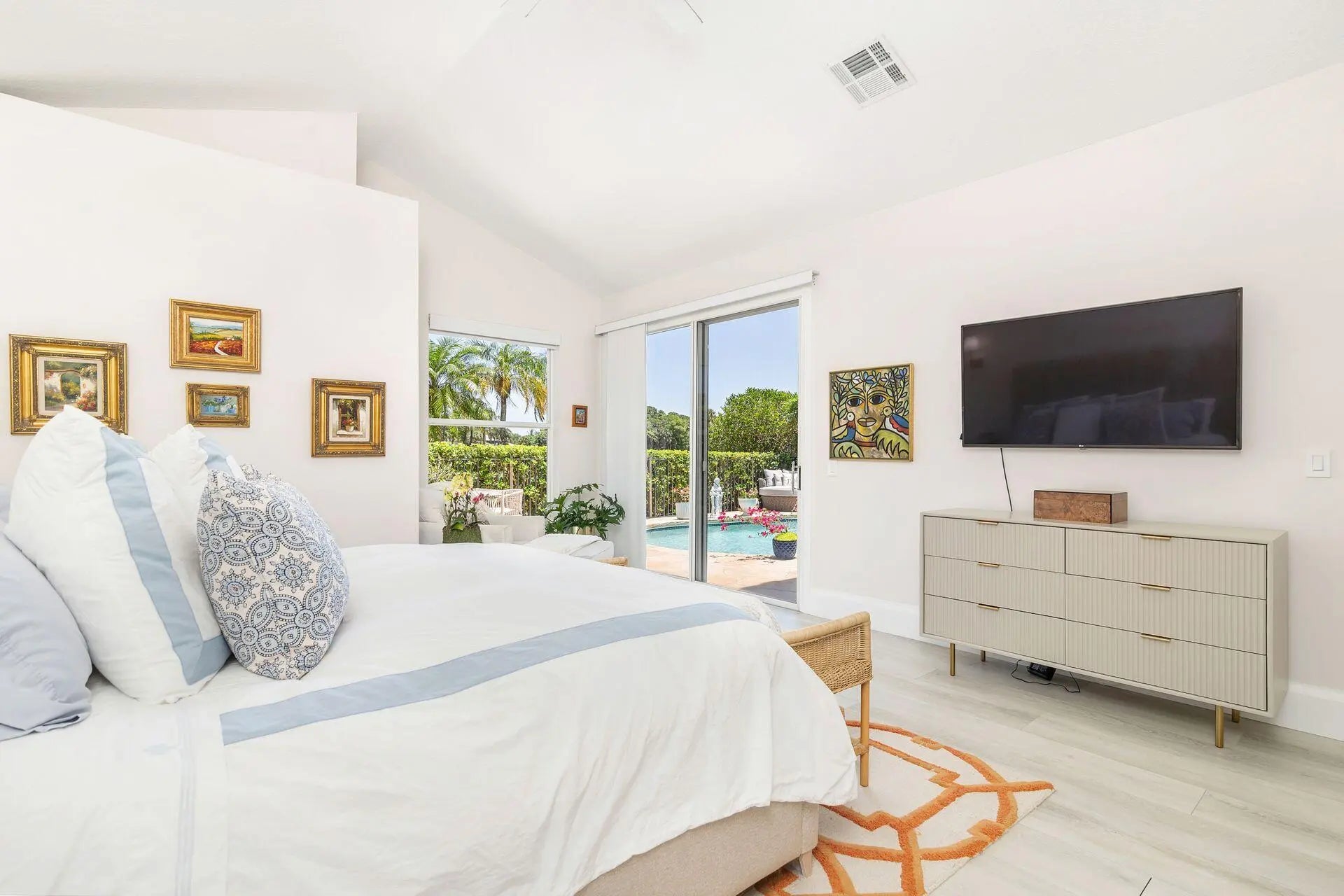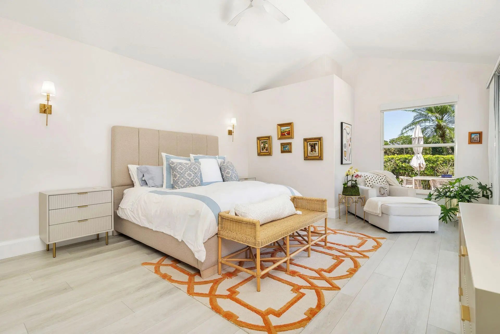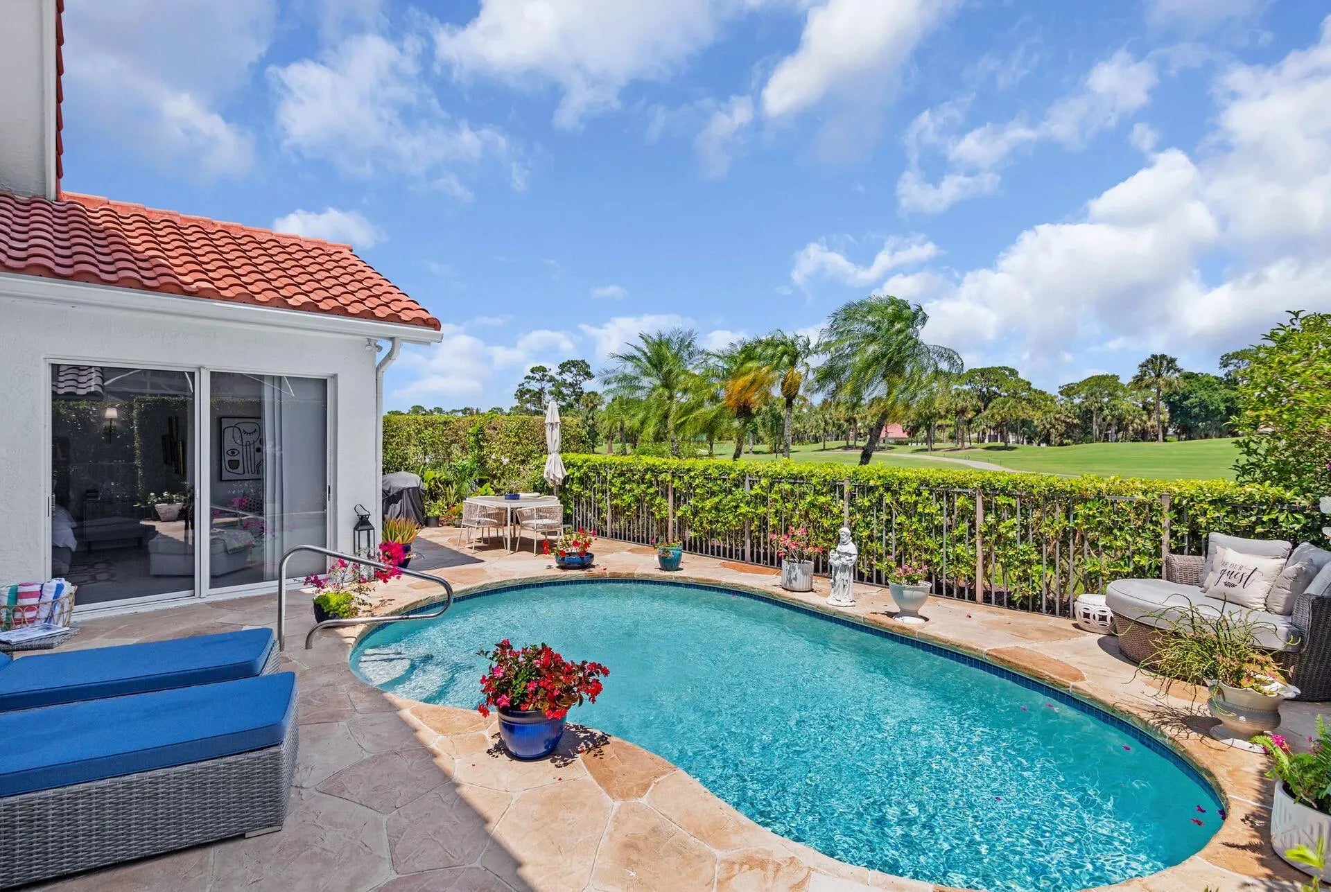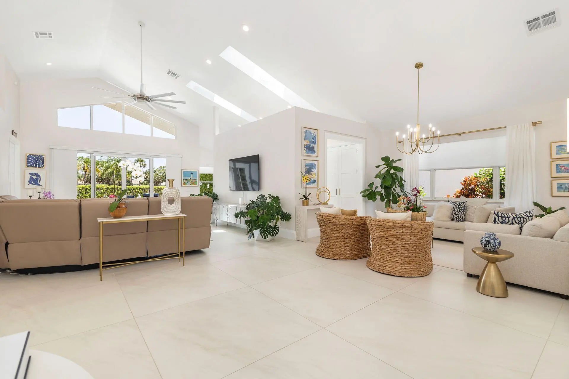Nestled within a prestigious, gated community, this model perfect home is a blend of elegance, comfort, and modern sophistication. This stunning single-story residence, boasts 4 spacious bedrooms and 4 luxurious bathrooms, making it one of the larger and more sought-after homes in the neighborhood. Perfectly positioned overlooking the golf course, and a tranquil lake, creating a peaceful and private retreat. Step inside to discover a thoughtfully updated interior, featuring elegant porcelain tile throughout living area and a host of high-end upgrades. The heart of the home, the kitchen dazzles with new white quartz countertops, white cabinetry, designer, fixtures, and top-of-the-line appliances. Each bathroom has been