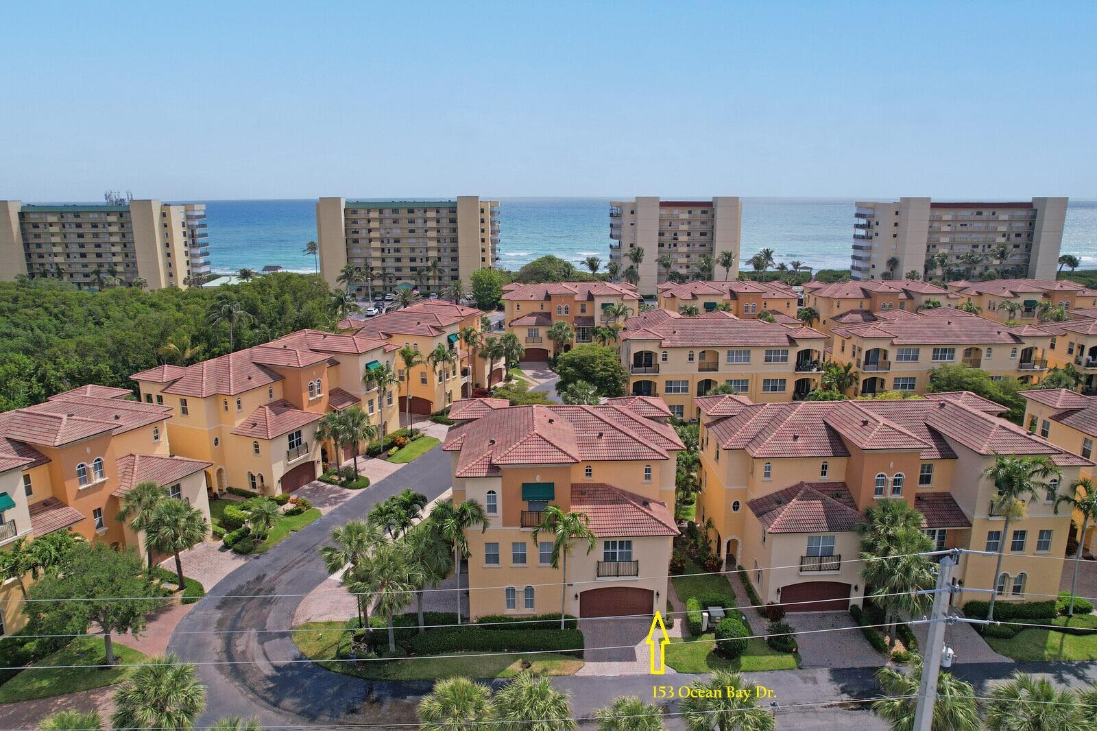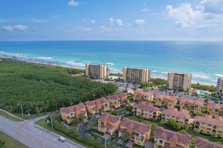 Corner unit in Ocean Bay Villas, one of Hutchinson Island's premier gated communities. Just a short walk to the beach and the Indian River Lagoon. This three story home offers a private elevator, 2023 AC, and an updated kitchen with quartz counters. Light and neutral finishes with plantation shutters and impact windows throughout. Enjoy three balconies with palm tree views, a spacious top floor primary retreat, and a two car garage with owner lock out closets. Perfect as a full time residence, vacation getaway, or income producing rental. Pet friendly community allows immediate rentals up to six times per year with a one month minimum. Amenities include pool, spa, fitness center, and easy access to downtown Jensen Beach and Stuart. Call today to schedule a showing.