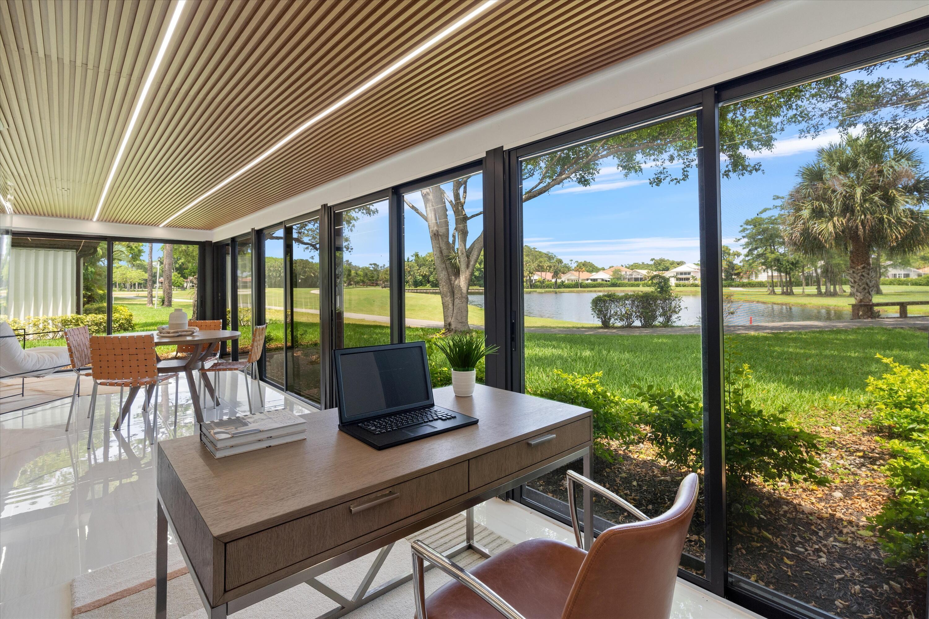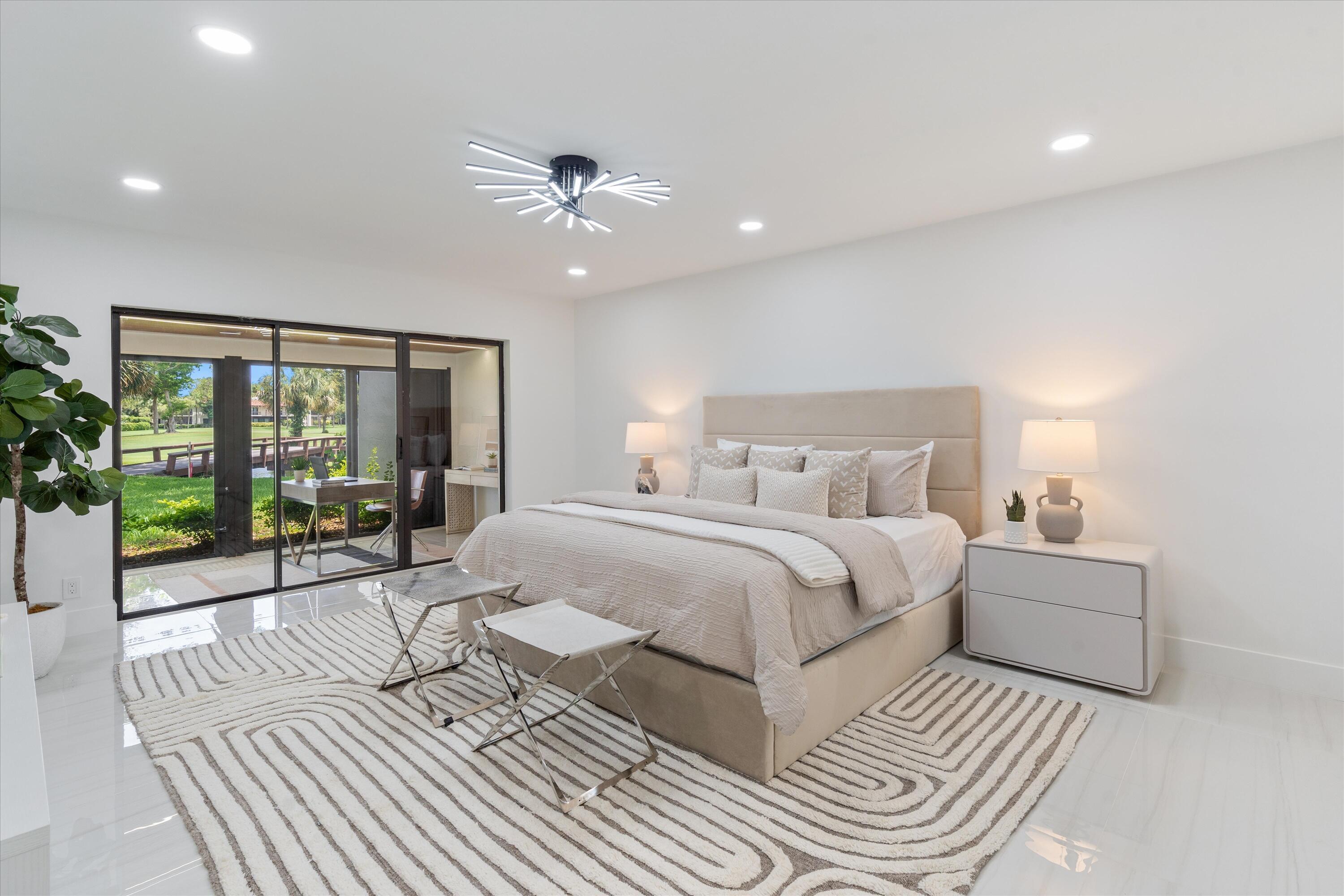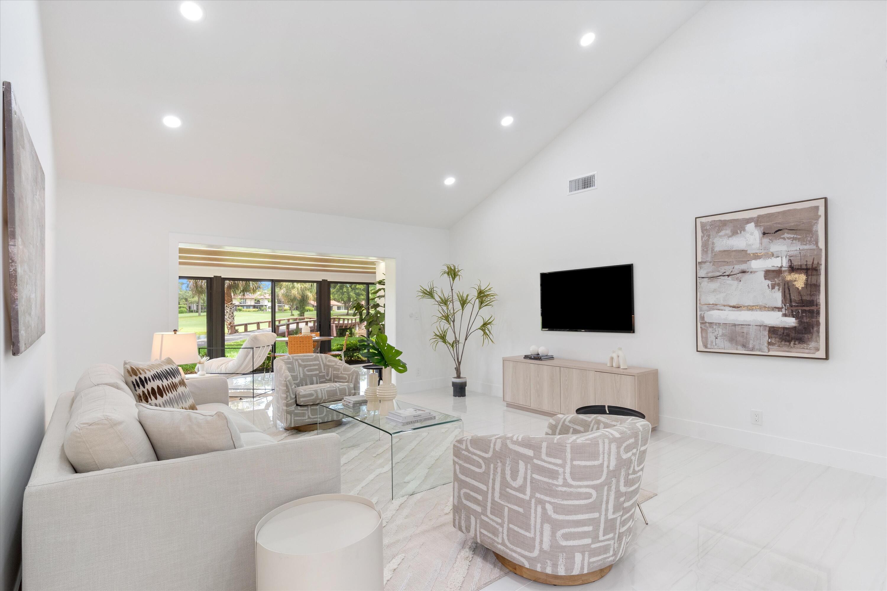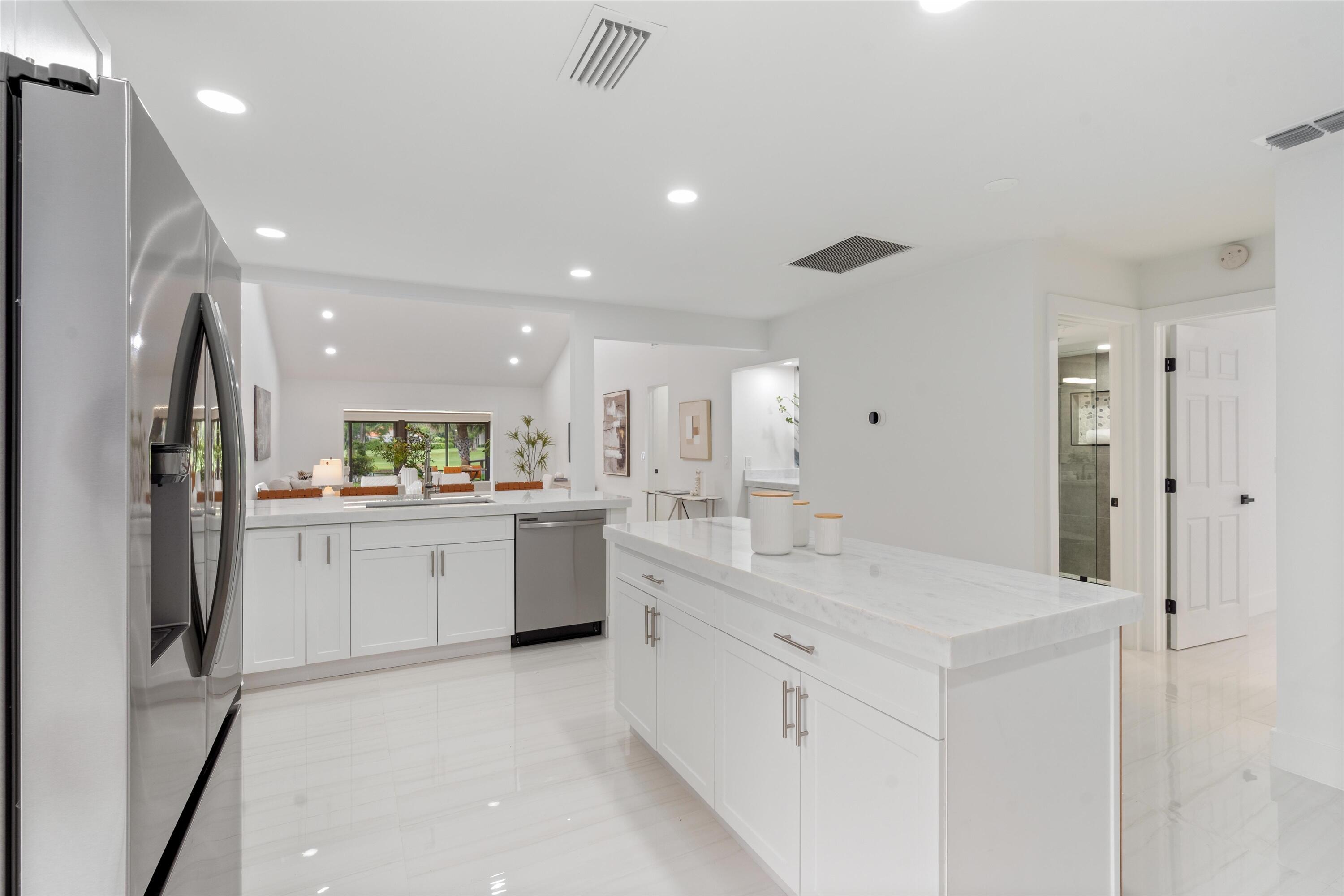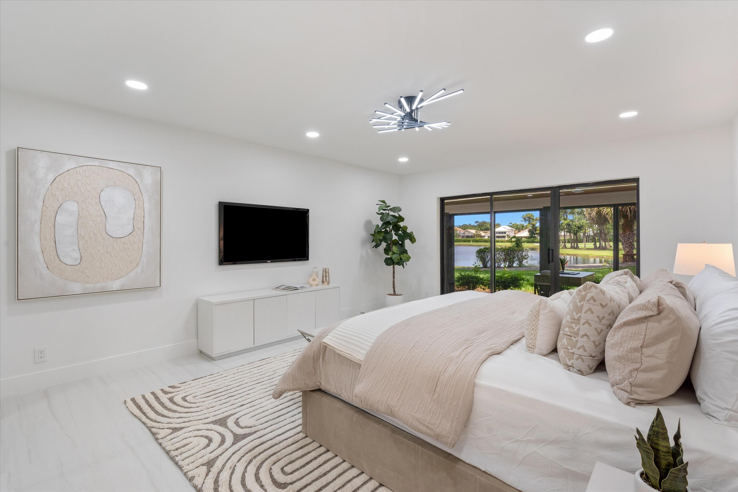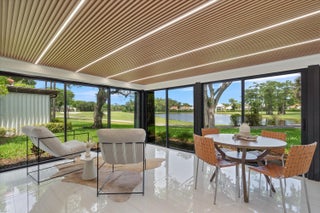 Recently updated and remodeled villa on the lake in Boca Lago. Come see one of the best views in the community! Delightfully decorated the highlight of this home is the massive enclosed patio with LED lighting in the ceiling overlooking the golf course, lake and footbridge. The roof was replaced in 2022 followed by adding new kitchen with stainless appliances, full porcelain tile throughout, ship lack accents, new bathrooms, new lighting, and so much more. This home is sure to please even the most picky buyer.