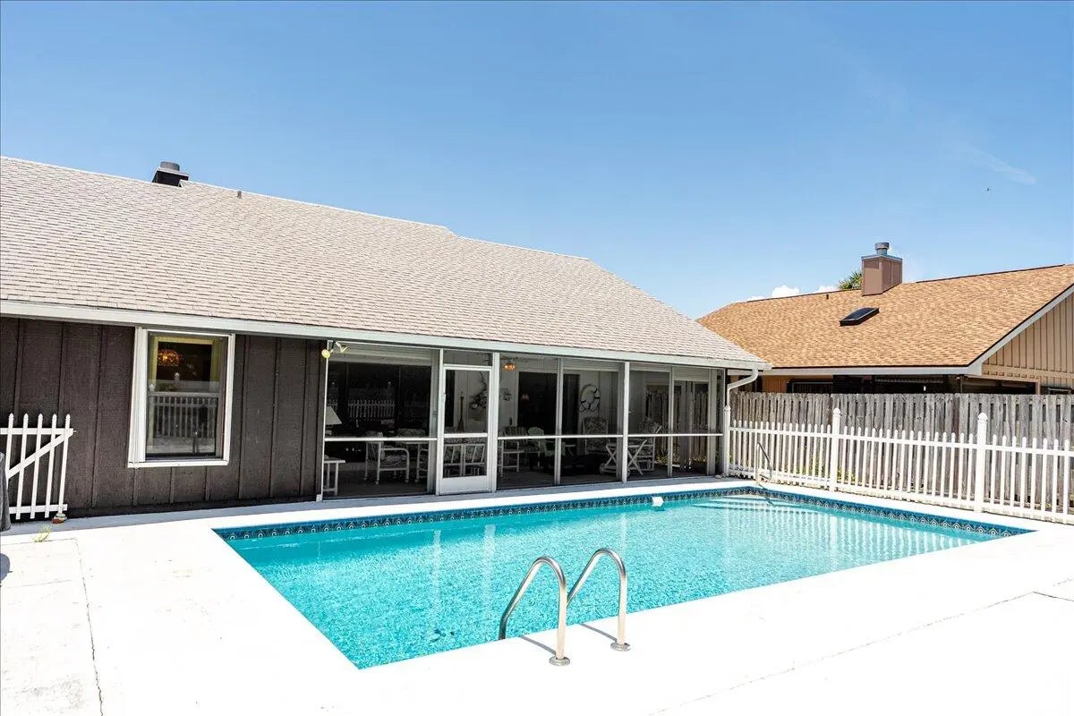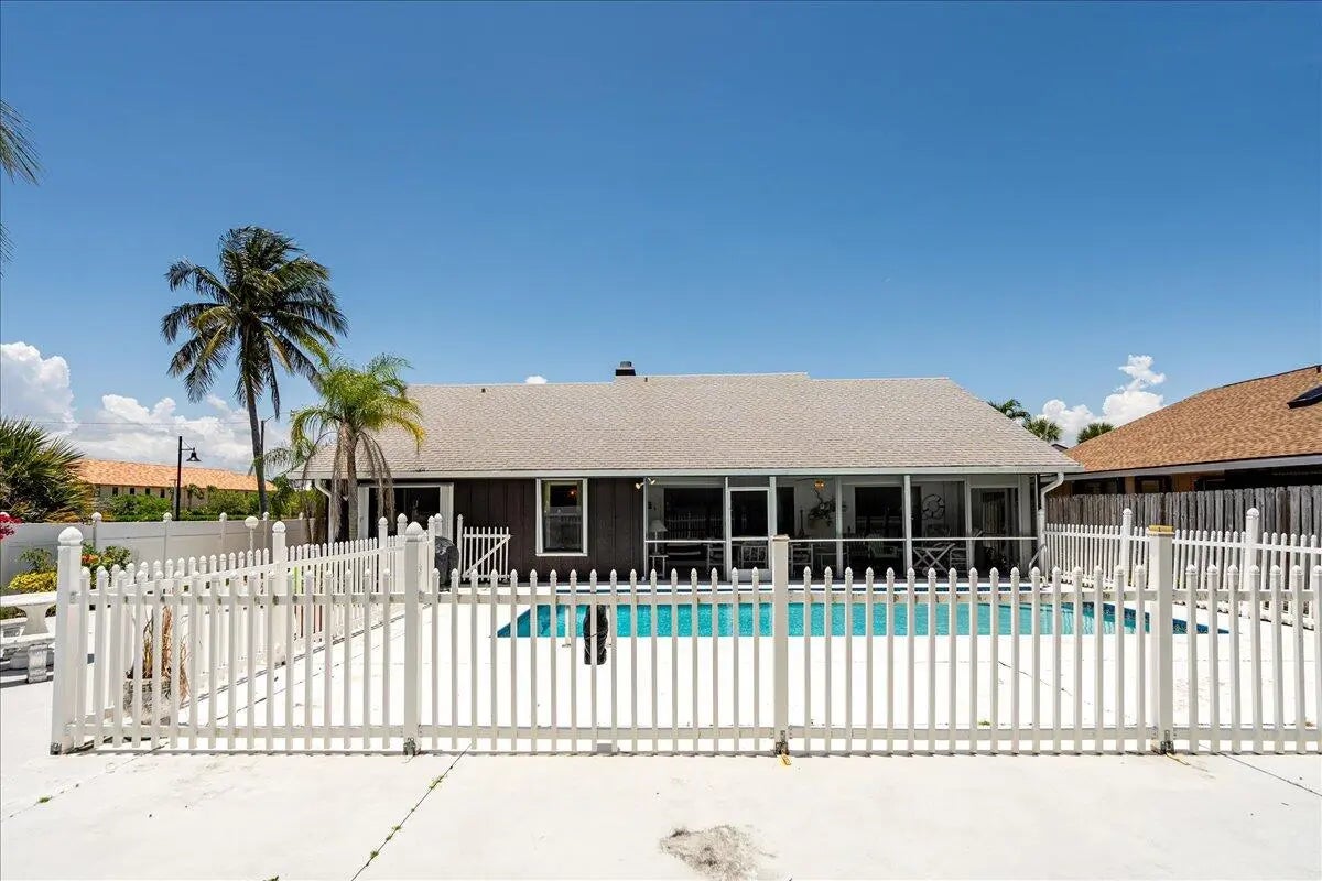 This is a rare opportunity to own a slice of paradise in a sought-after Jupiter location. Just steps from DuBois Park, Jupiter Beach, and the scenic Inlet, this charming single-family home offers coastal living at its finest.This beautiful residence features 3 spacious bedrooms, 2 full bathrooms, and a 2-car garage. Two expansive covered patios overlook a sprawling, fenced backyard with a sparkling in-ground pool--perfect for relaxing or entertaining. With no homeowners association, enjoy the freedom to make this home truly your own.A grand double-door entry sets the tone, opening into a bright and airy living and dining area with soaring volume ceilings and transom windows that bathe the space in natural light. The large covered patio seamlessly connects to the pool area, ideal for