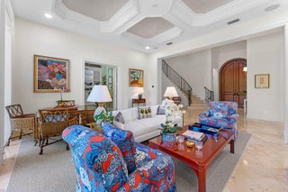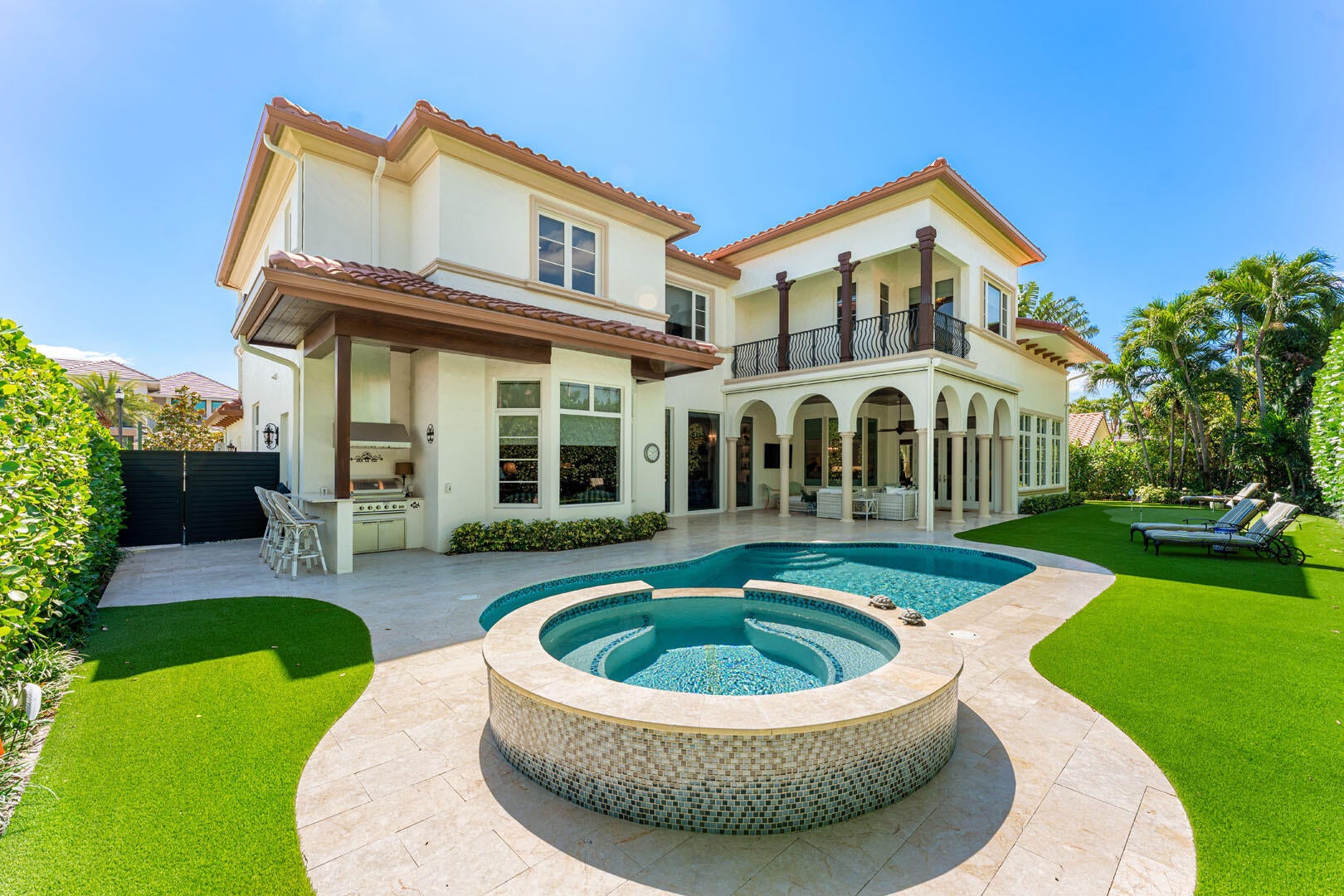This exceptional residence presents a rare blend of timeless Mizner architecture and modern luxury. Fresh enhancements include a new roof, custom-designed pool and spa, integrated home speaker system, built-in BBQ, bespoke cabinetry, and designer lighting and wall coverings--all curated to elevate everyday living. The private backyard is a true retreat, featuring a custom-heated pool, spa, and putting green surrounded by premium artificial turf. A covered patio offers al fresco dining with a built-in grill, ideal for hosting under the Florida sun or evening skies. Inside, the home unfolds with sophistication and comfort. A formal dining room is complemented by a bar and wine storage, while the gourmet kitchen, complete with a pantry and casual dining space, anchors the heart of the home.The private study, fitted with custom wood built-ins, offers an ideal workspace or reading sanctuary. The primary suite is a haven, with a spa-like bath and dual boutique-style closets. Impact glass windows and doors provide peace of mind, while natural gas, a full-house generator, and upgraded mechanicals ensure seamless function throughout. Every element of this residence reflects thoughtful investment and refined taste, designed for the buyer who demands both luxury and longevity.