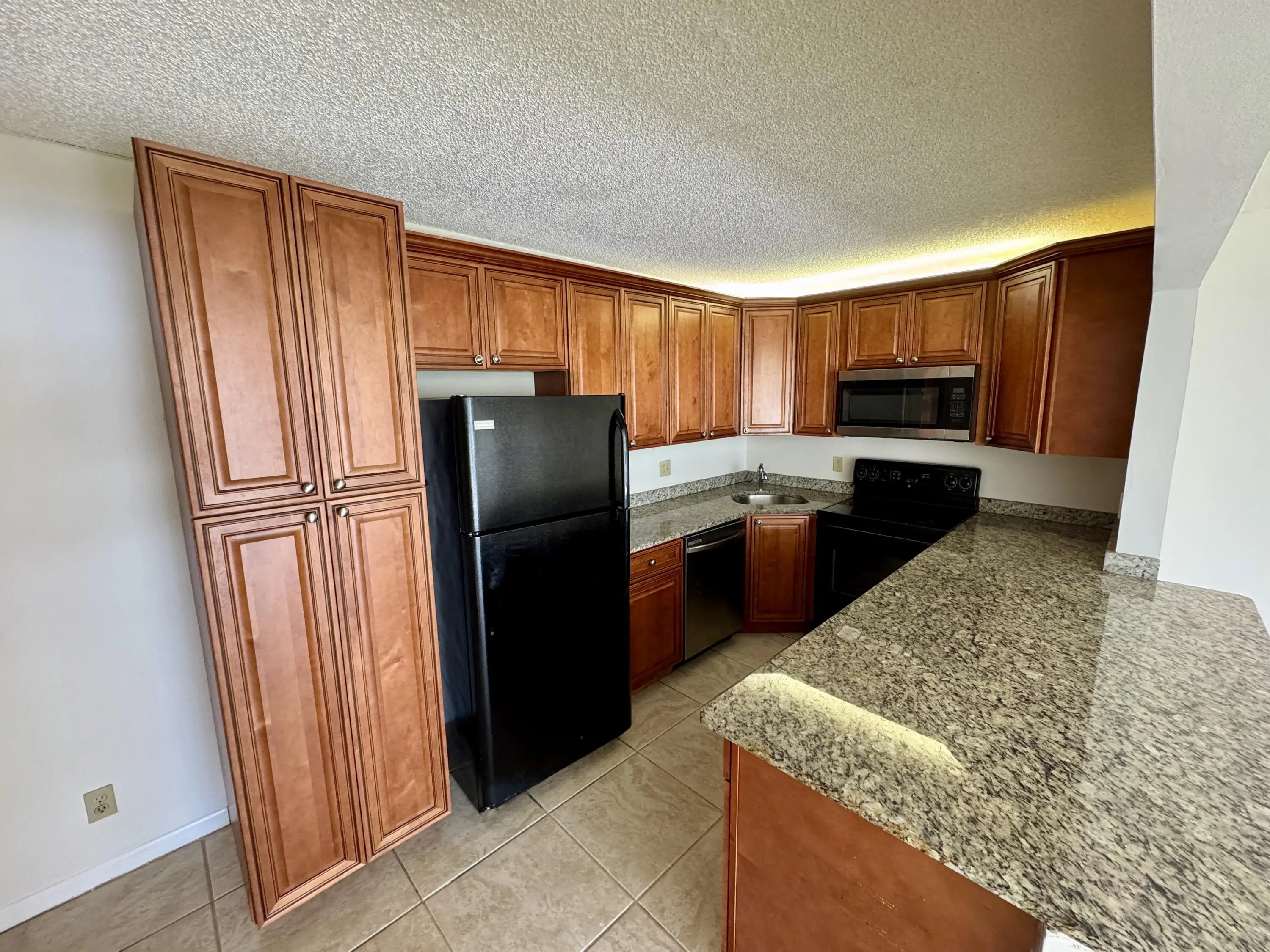 First floor lake front condo. Unit has updated kitchen and tile floors throughout. Spacious floor plan with separate dining area. Water and basic cable included. Manned security and heated pool.