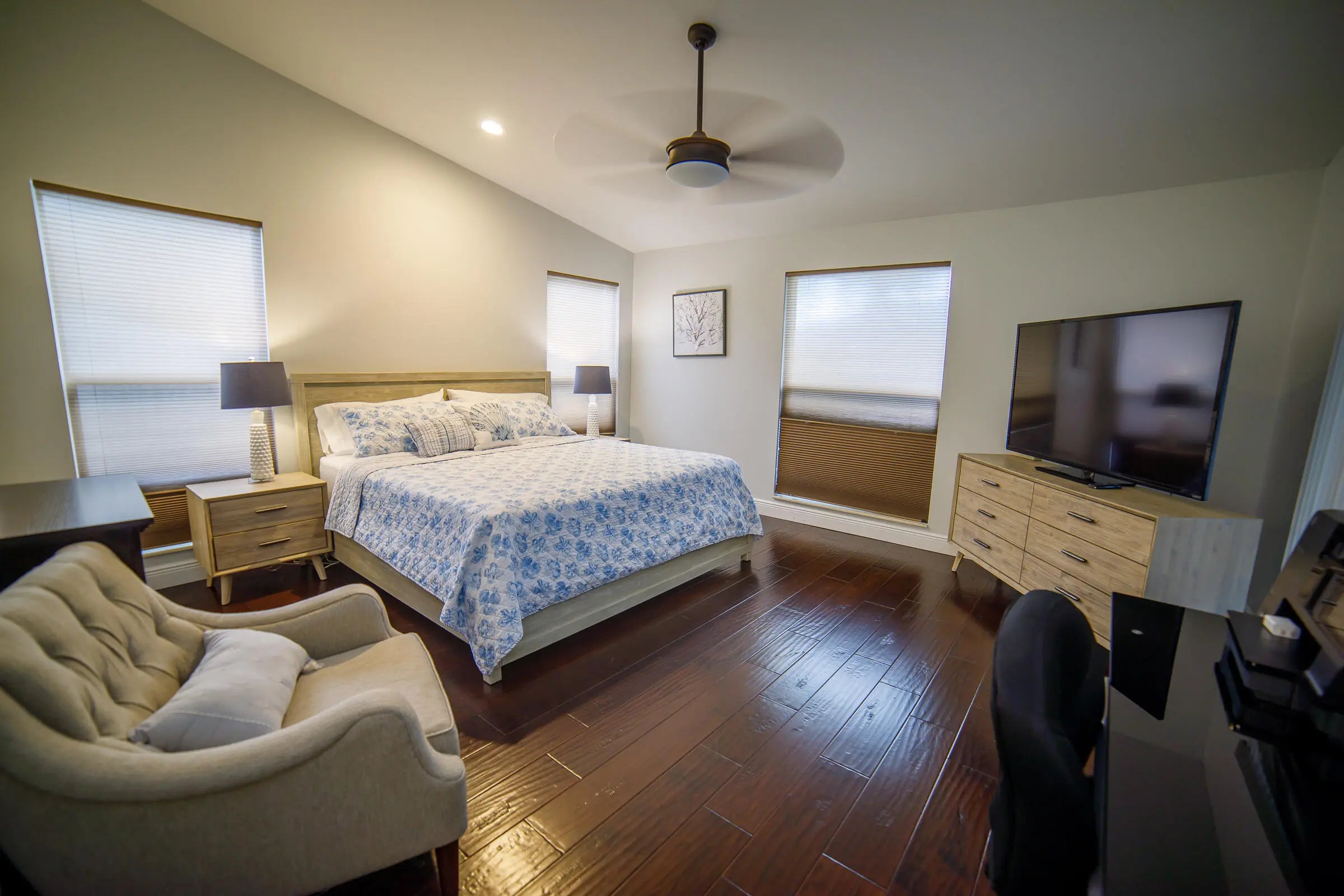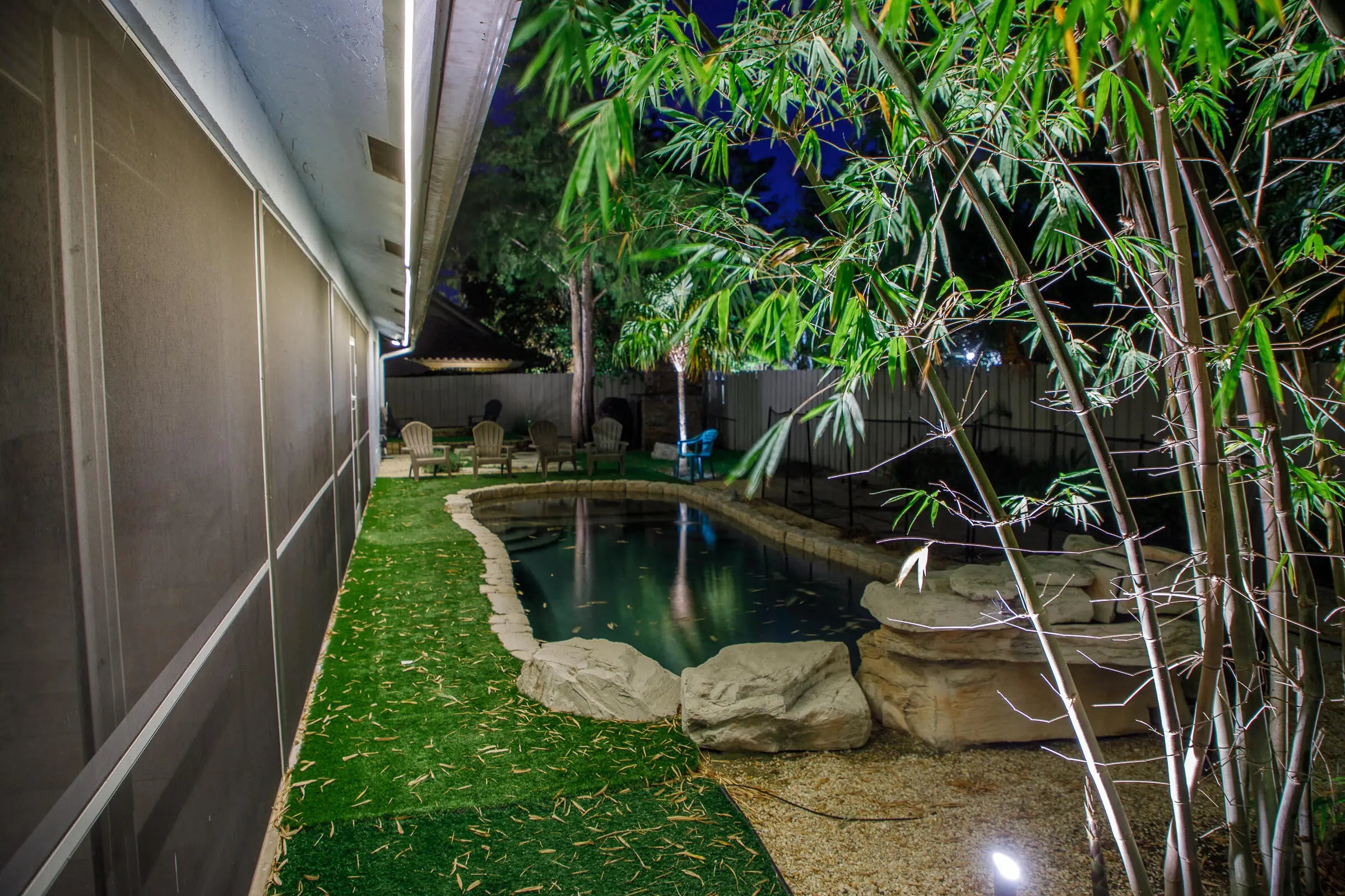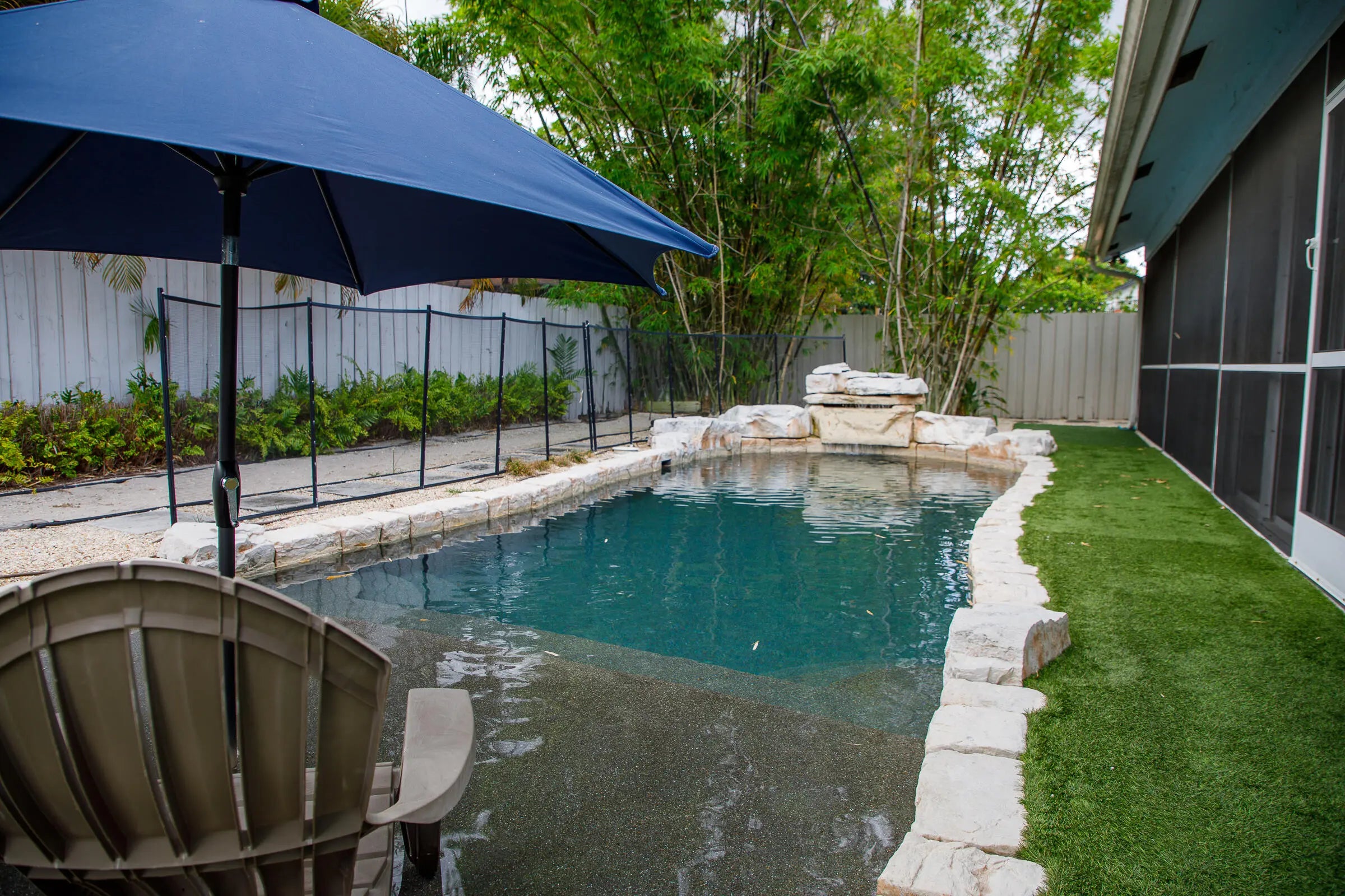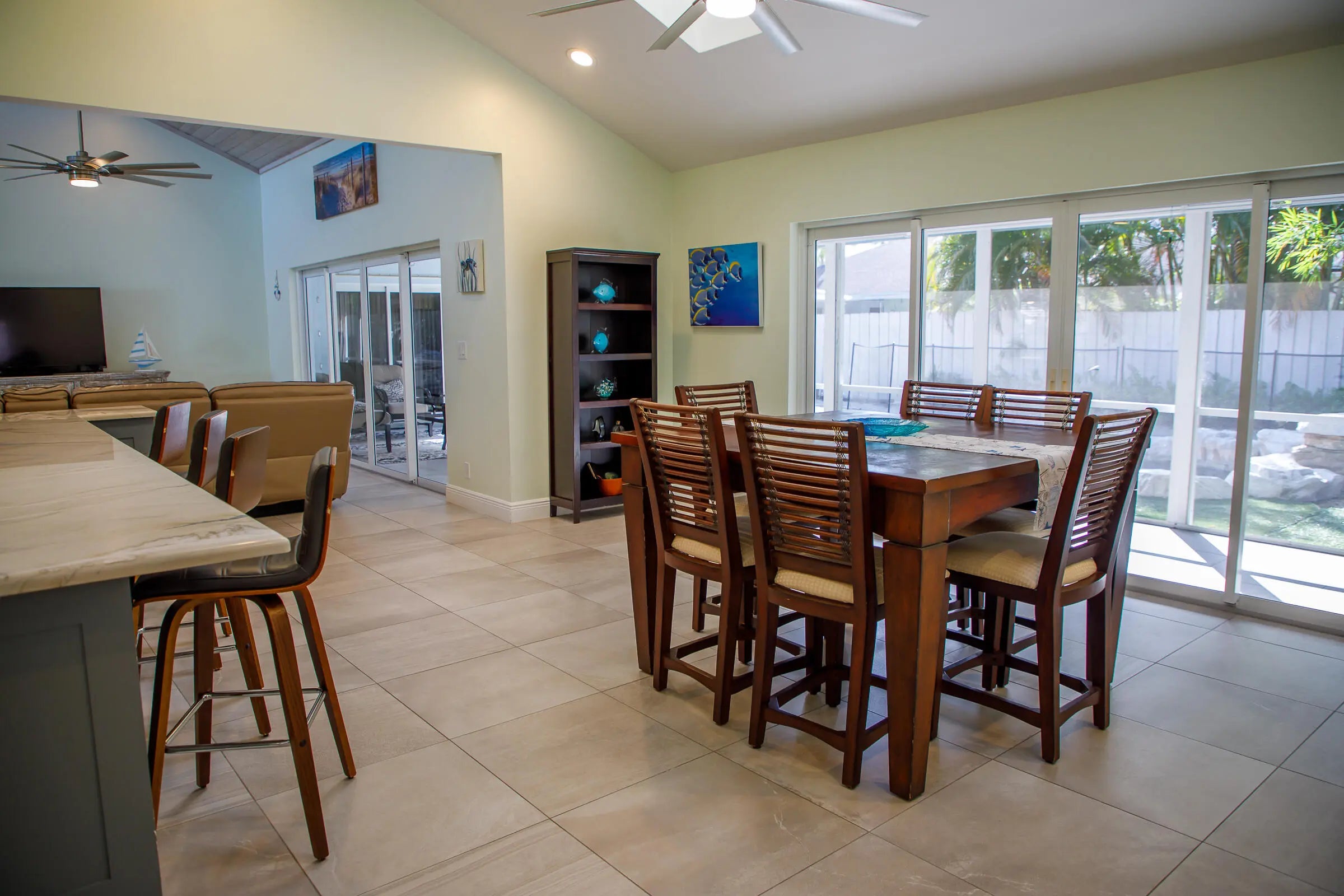 Welcome to this exquisite turnkey single-family home, fully furnished for your ultimate convenience. Nestled in a serene community, this residence boasts a private pool, screened patio, and a charming fire pit, offering a perfect blend of tranquility and luxury. Step inside this tastefully decorated 3-bedroom, 2-bathroom haven with vaulted ceilings that enhance its spacious allure. The interior features a formal living room, dining room, and a kitchen adorned with quartz countertops and stainless steel appliances. Elegant ceramic tiles and wood flooring flow seamlessly throughout the living spaces, adding a touch of sophistication.