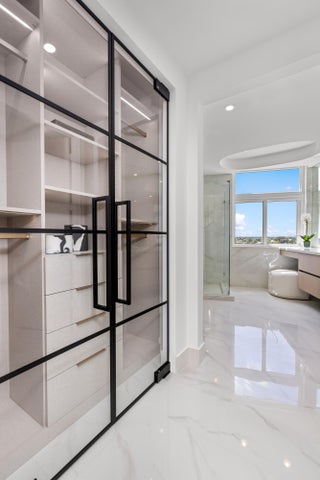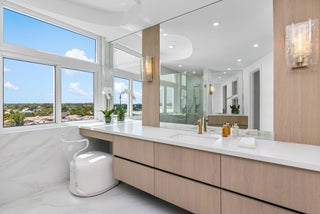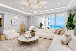 Introducing Residence C-5 at Aragon, Boca Raton's premier oceanfront address, where contemporary elegance meets refined coastal living. Masterfully re-envisioned by renowned designers Michael Gray and Lori Keezer, this immaculate residence offers a seamless blend of sophistication, comfort, and breathtaking ocean views. Encompassing 3,764 square feet of exquisitely designed interiors, the home showcases 3 spacious bedrooms and 3.5 impeccably appointed baths, each reflecting a balance of timeless design and modern sensibility.Step off your private elevator into an inviting entry foyer that leads directly into an expansive great room framed by walls of glass that capture panoramic views of the Atlantic. This light-filled living space opens onto a generous ocean-facing terrace, ideal for both quiet relaxation and stylish outdoor entertaining. The primary suite is a private retreat, with serene ocean views, custom-designed lighting, and luxurious textures throughout. It boasts a bespoke walk-in wardrobe and an opulent spa-style bath, complete with double vanities, a sculptural soaking tub, and a large marble-clad shower. Each of the secondary bedrooms offers its own distinct charm, with en-suite baths, designer finishes, and bespoke details, ensuring both comfort and privacy for residents and guests alike. At the center of the home is a state-of-the-art kitchen, designed for both beauty and performance. Outfitted with sleek integrated appliances, rich custom cabinetry, and striking book-matched stone surfaces, the kitchen features a sculptural waterfall island that serves as both a functional workspace and social hub, artfully lit with contemporary pendant fixtures. Additional highlights include a well-appointed laundry room, a discreet powder bath near the entry, and two premium garage parking spaces. Aragon is a full-service, boutique-style oceanfront building offering exclusive amenities, including a private residents-only beach area, oceanfront pool, and 24-hour concierge services. With an unbeatable location, moments from the Boca Beach Club, upscale shopping, and fine dining, Residence C-5 presents a rare opportunity to experience the pinnacle of coastal living in one of Boca Raton's most prestigious communities.