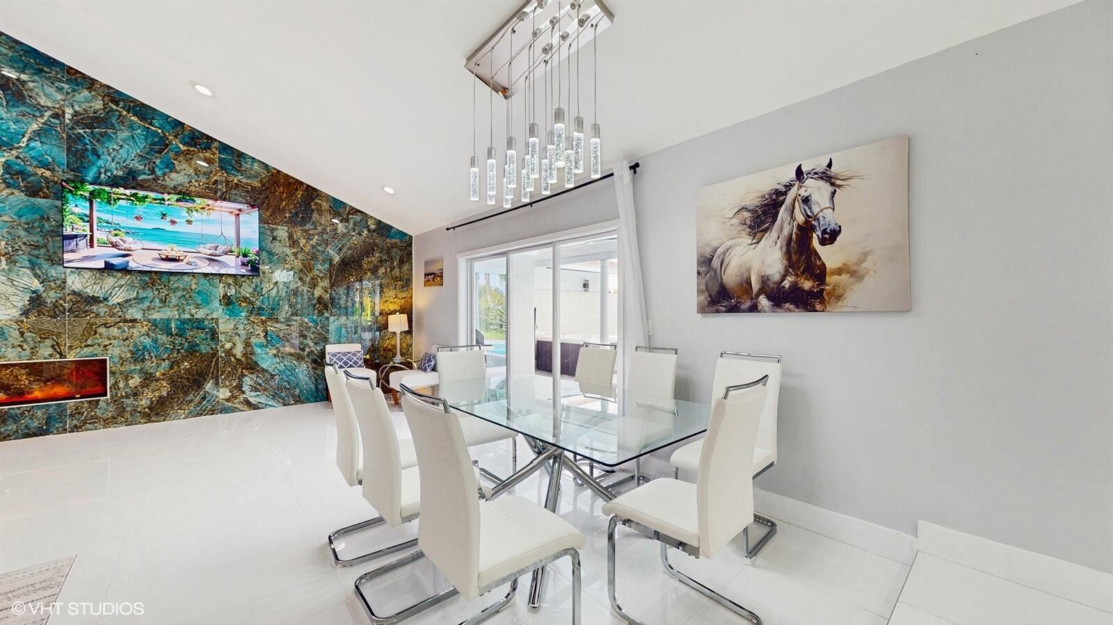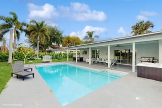 Beautifully renovated 5/3 residence with big pool and huge yard with an extensive range of amenities for kids and adults. Outside fireplace and hot tub give you relax after busy day. The large, covered porch provides an optimal outdoor relaxation space. The pool adds an extra layer of luxury and entertainment potential. Overlooking a canal, the house enjoys serene views and privacy.
