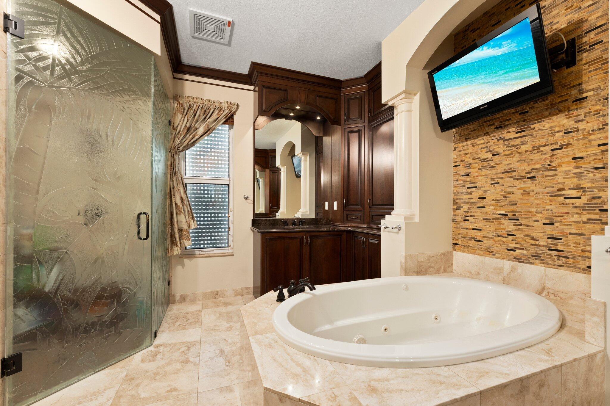 Built-in Shelves, Closet Cabinets, Entry Lvl Lvng Area, Cook Island, Roman Tub, Split Bedroom, Upstairs Living Area, Volume Ceiling, Walk-in Closet