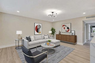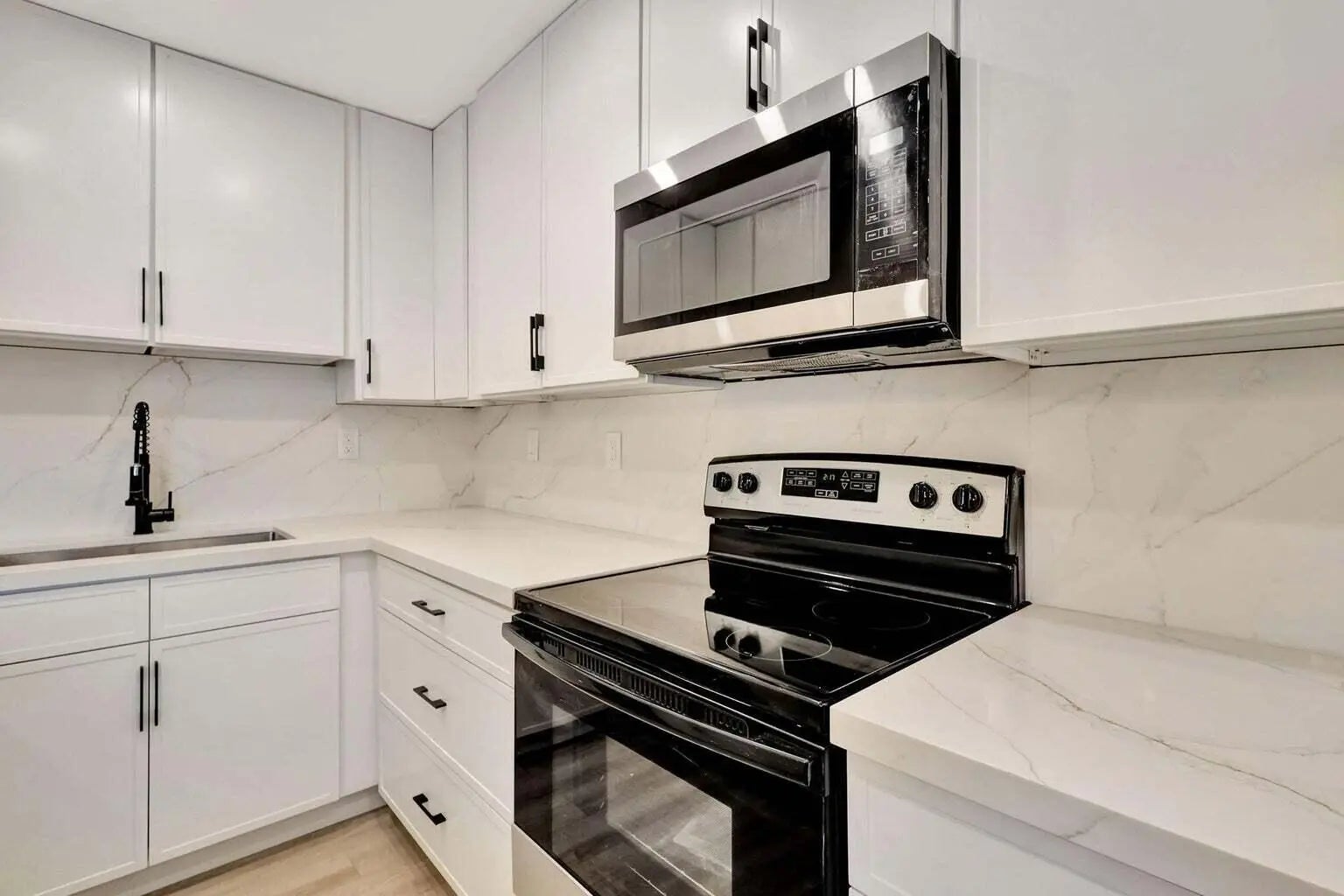Discover the ultimate in luxury living at 802 Burgundy Q, a stunning 2nd-floor designer condo located in the exclusive 55+ community of Kings Point Golf & Country Club. This completely updated unit offers the perfect combination of modern style and comfort, just steps away from the Burgundy Satellite Pool. As you enter, you'll be greeted by serene garden views and an abundance of natural light that flows through the spacious open-concept living areas. The entire condo features waterproof laminate flooring, providing both beauty and durability. Freshly painted in neutral tones, the space feels bright and inviting. The chef-inspired kitchen boasts striking quartz countertops with a waterfall edge, complemented by sleek white shaker cabinets and top-of-the-