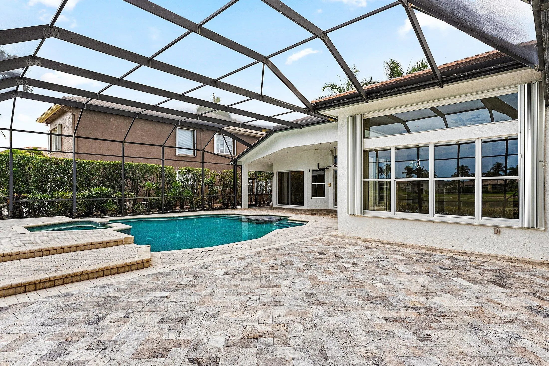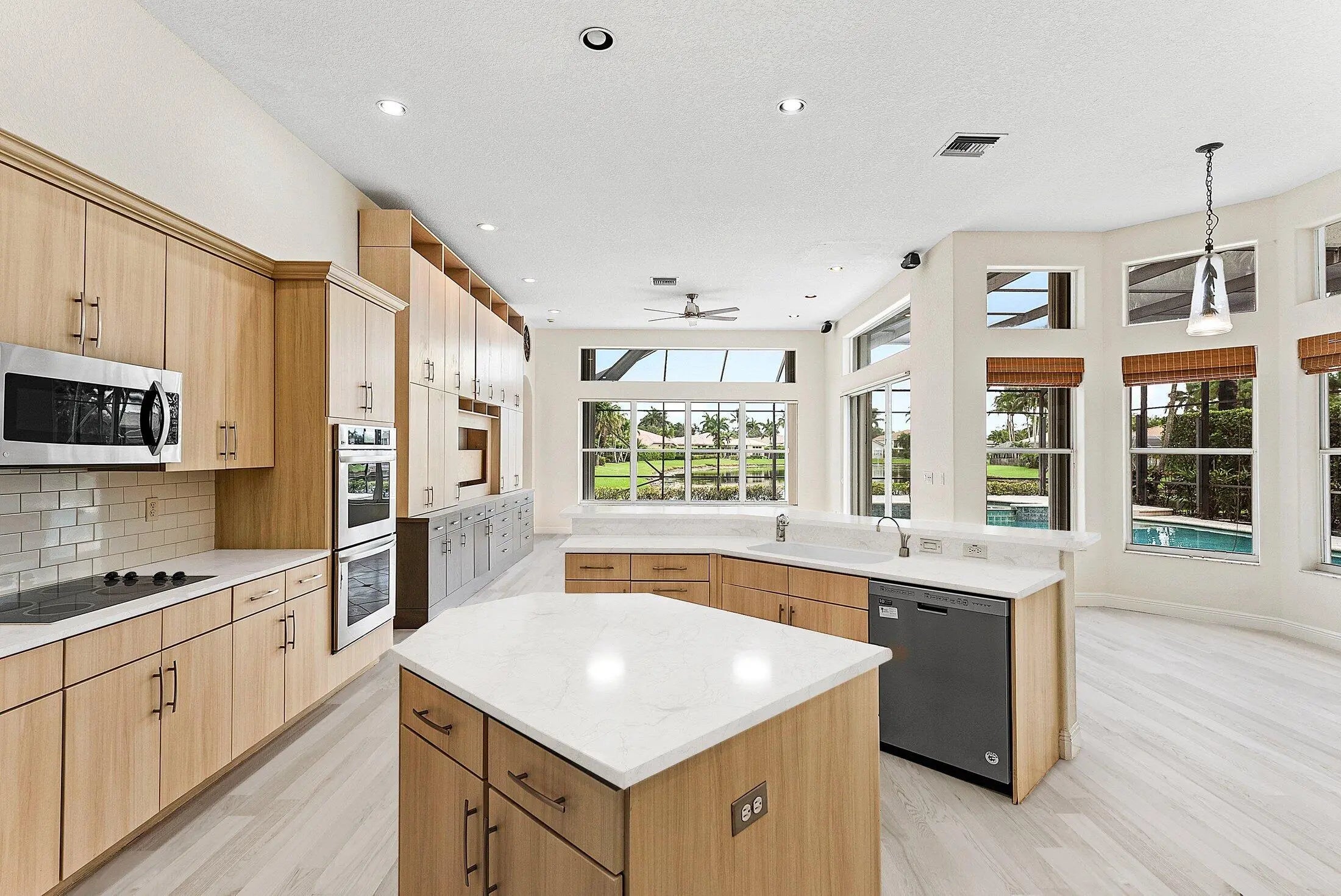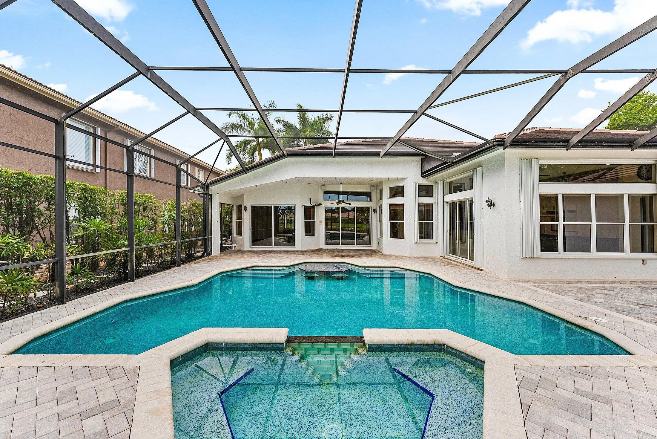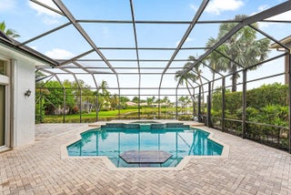 Welcome to this sought out one story home, situated on a long lake lot! This home features 5 bedrooms, 3 full bathrooms with a 3 way split floor plan. Oversized screened-in pool with stunning water views. Enjoy peace of mind with a new roof (2023), built-in whole-house generator, and whole-home water filtration system. The primary bathroom has been completely renovated with top of the line modern finishes. Walking distance to top-rated schools and South County Regional Park, offering golf, sports fields, amphitheater, dog park, and a water park. An exceptional opportunity to own a luxurious, move-in-ready lakefront home in a premier location!