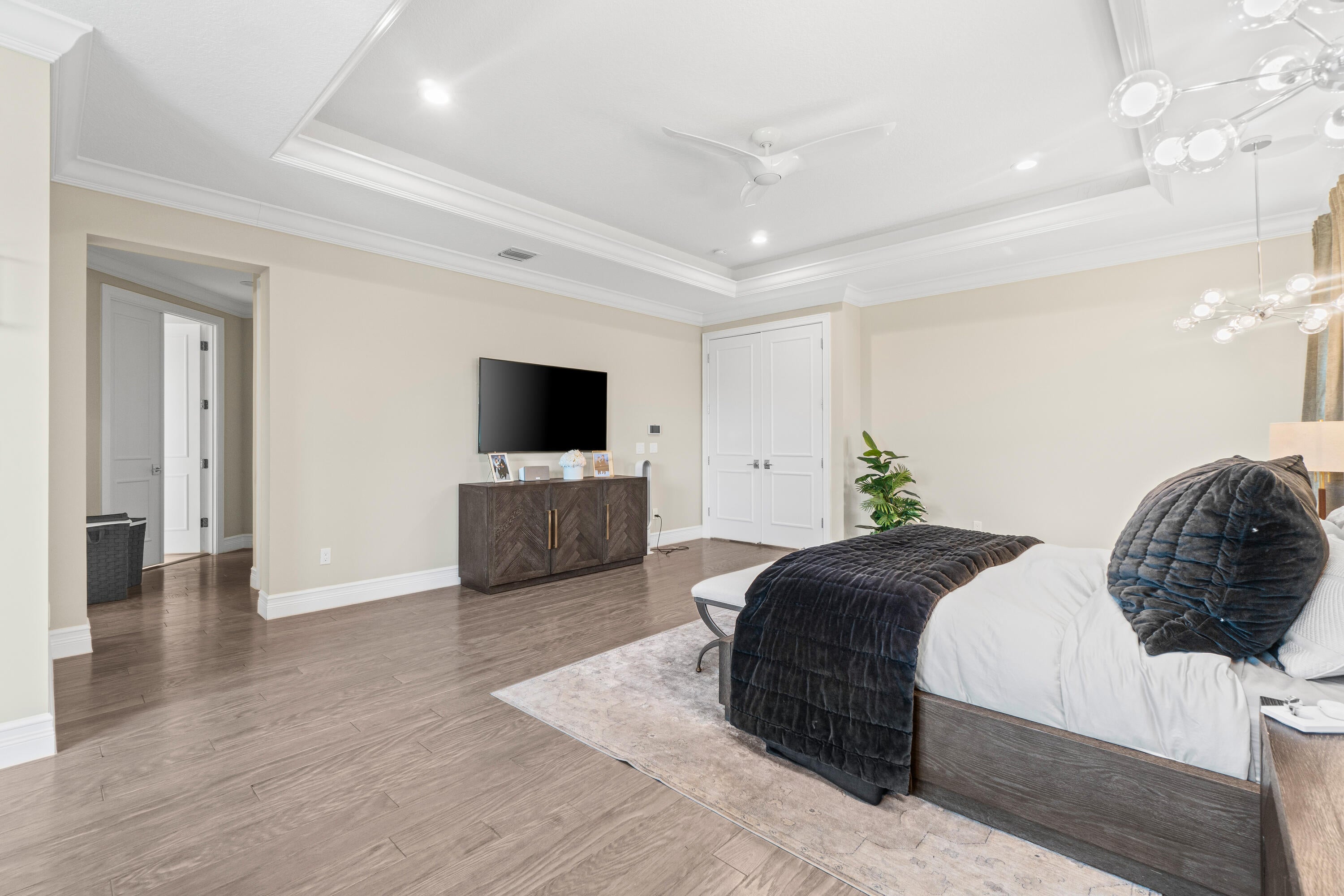 Set on one of the largest lots in Boca Bridges with no rear neighbors, this Sanibel model offers over 5,330 sq. ft. of luxury living with 5 ensuite bedrooms and 6.5 baths. This home features gorgeous porcelain accent wall, upgraded kitchen, google smart home, Lutron lighting Sonos, salt water pool, and much more!The Boca Bridges offers resort style amenities with no club dues: a 27,000 sf clubhouse, gourmet restaurant, pools, fitness center, tennis, pickleball, indoor/outdoor basketball, splash park and more!