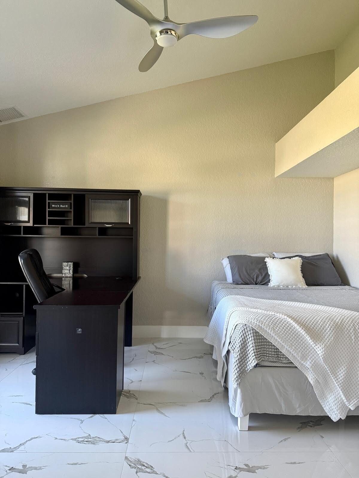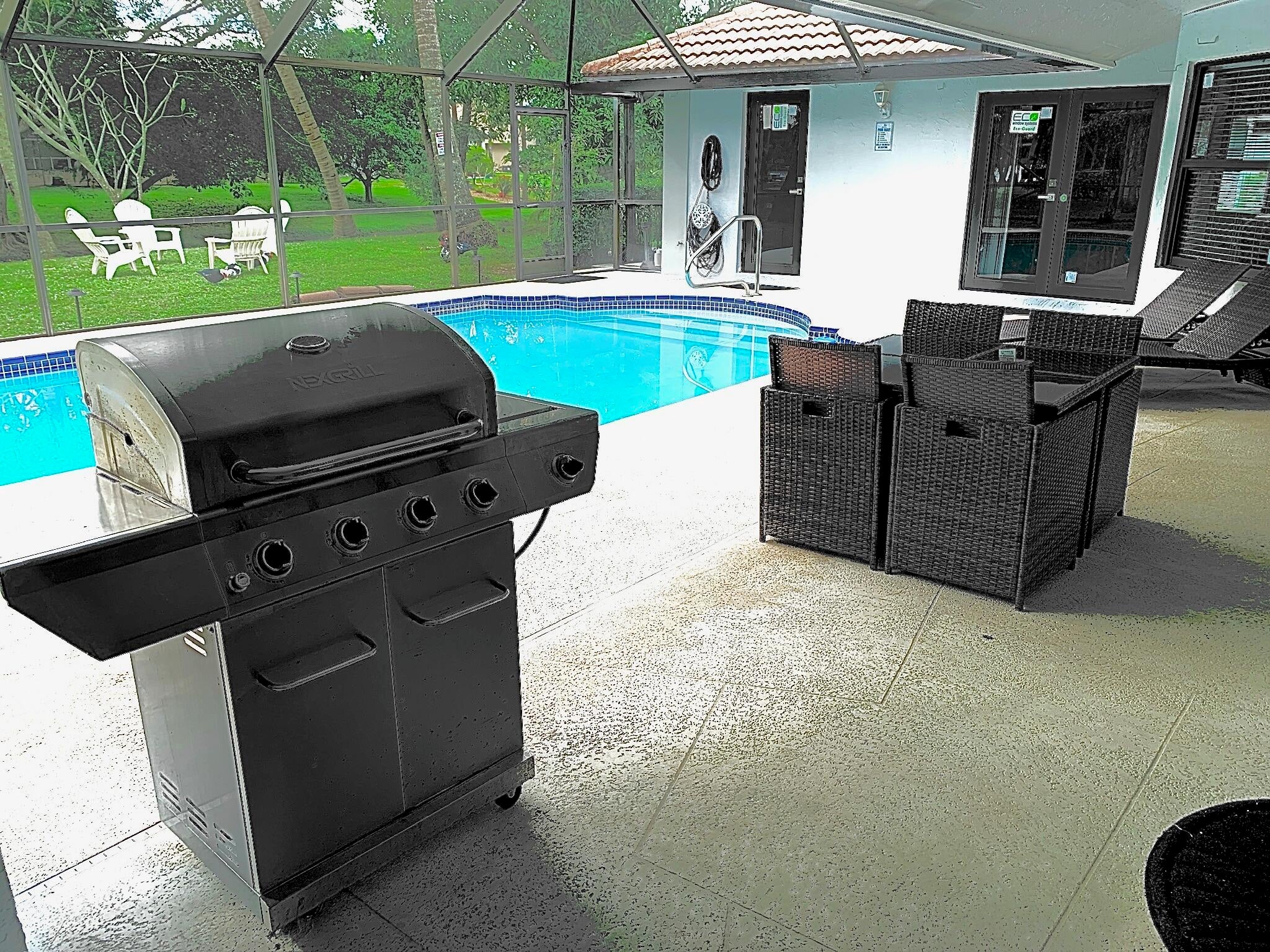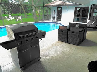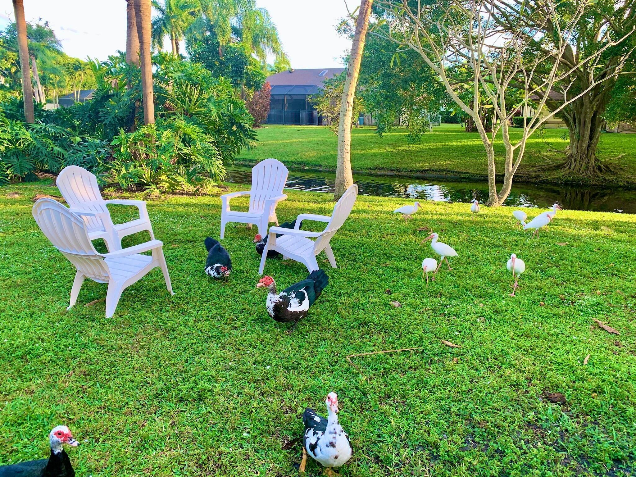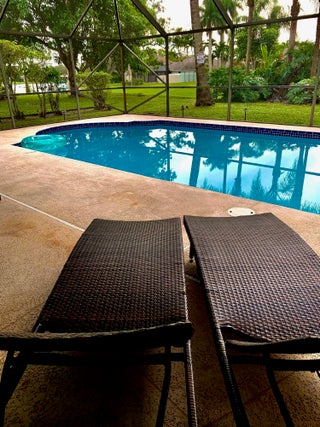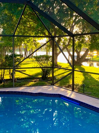 No HOA approval required! No pet restrictions. Available for 2026 winter season. Take in a sunset or gather around the newly renovated oversized kitchen island with your favorite beverage. FULLY RENOVATED pool home on the lake 10 min golf cart ride to WEF and walking distance to shopping, top rated restaurants and amenities. Heated and screened pool, 2 car garage, and dual AC system. Oversized vehicles including Dully trucks allowed. No commercial vehicles unless they fit in oversized garage or covered with blank magnets. 1 king, 2 queen, 1 full and 1 twin beds in 4 rooms. Pets welcome.