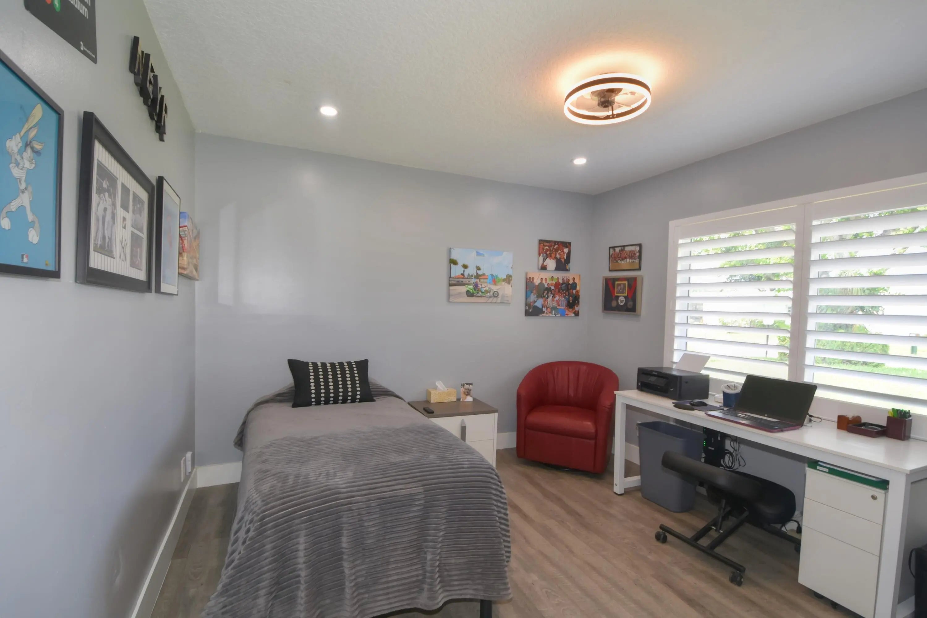 Extensively remodeled two bedroom/two bath villa home with den in 55+ community of Delray Villas. Corner lot with canal view; no homes behind for privacy. Skylights and granite counter tops in both bathrooms. Energy efficient high-hat lighting throughout. New roof in 2020. New A/C, hot water heater and washer in 2021. Following items all new since Feb. 2024: Waterproof gray vinyl plank flooring throughout. Remodeled kitchen including custom pantry, quartz counter tops, quartz sink, sensor faucet, garbage disposal, stove, microwave, refrigerator and beverage cooler. Impact windows throughout; double french impact doors to patio. Master bathroom updates including frame-less shower doors, mirror, light fixture, towel bars and toilet. Custom closets in master bedroom and guest bedroom.