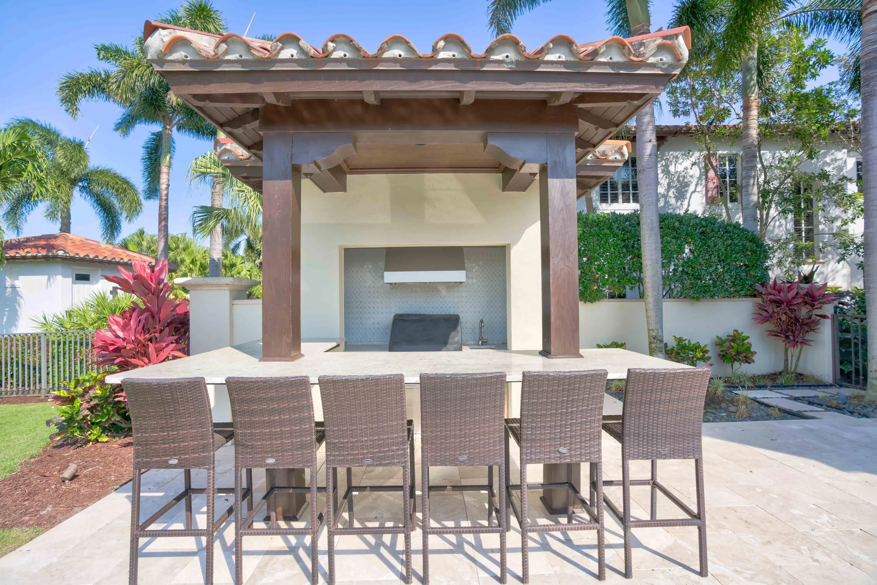 Incredible furnished, 4 bedroom, 4 1/2 bathroom home in the sought after Trump National Golf Club. The spacious, private patio and pool area have been extended. Great views overlooking the 3rd hole of the golf course and lake. Large, fenced in yard and private putting green. Enjoy a glass of wine on the covered patio and dinner at the recently renovated Summer kitchen. Trump National is located just off Donald Ross Road and close to the airport, shopping, great restaurants and so much more. Make an appointment to check out this spectacular home today! Access to amenities available with purchase of membership. Home is rented through September 30, 2025. Owners occupy the home from November 1 through April 30th. DO NOT ASK ABOUT ANNUAL RENTALS PLEASE! Please call with any questions.