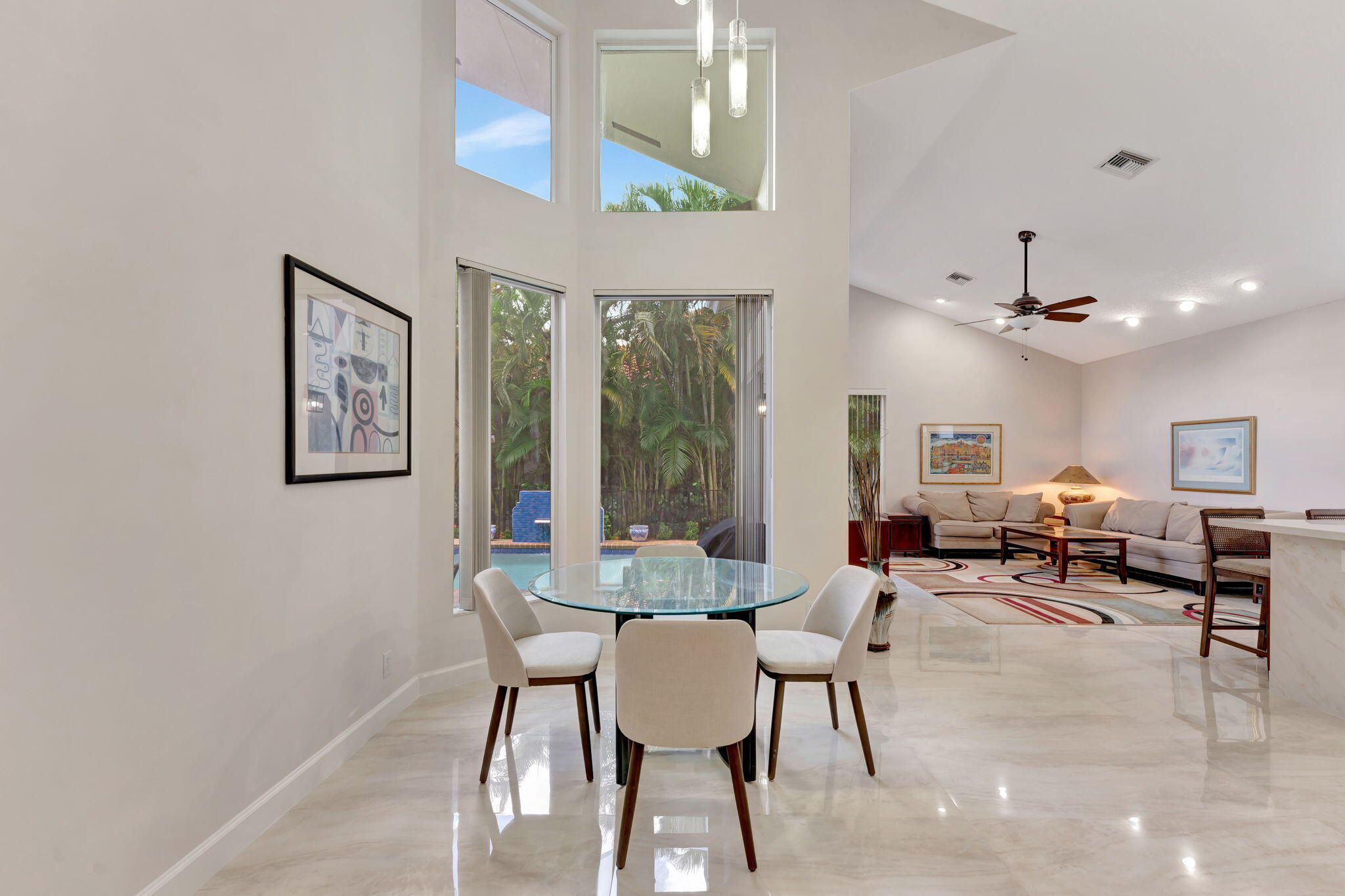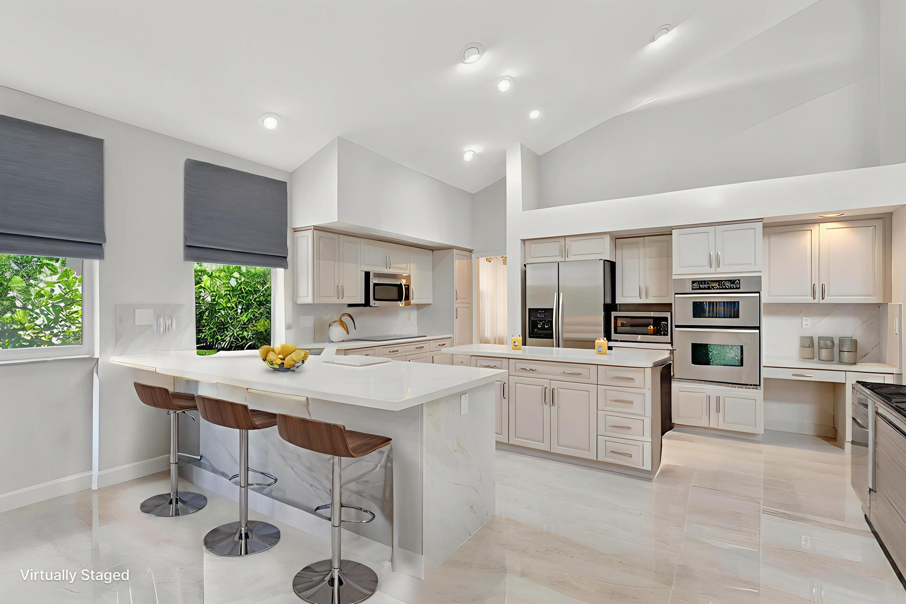 Stunning single-story home in the prestigious Seasons community of Boca Raton, featuring a new roof (2024) and new AC system (2025). The home was just completely painted on the outside, adding to its fresh, move-in-ready appeal. This elegant residence offers soaring ceilings and abundant natural light throughout, with 4 bedrooms, 3 full baths, and 2 half baths, all fully remodeled. The smartly updated kitchen boasts quartz countertops, stainless steel appliances, and ample cabinet space. Beautiful new flooring and 5'' baseboards complement the freshly painted neutral interiors with a modern touch. Enjoy formal dining and a floor plan perfect for both intimate and large group entertaining.Step outside to your private backyard oasis with a sparkling pool featuring newer Diamond Brite finish and a graceful glass block waterfall. The partially covered patio includes an automatic retractable awning with wind sensors, perfect for outdoor entertaining. An oversized 2-car garage with room for storage, exceptional curb appeal, and an inviting double-door entry with an elegant chandelier complete this beautiful home in a sought-after location. Seasons offers an unparalleled lifestyle for all ages, with magnificent tennis programs, soon-to-be-completed pickleball courts, and resort-style amenities designed for active living. The guard-gated community ensures peace of mind, while its exceptional location provides easy access to top-rated schools, nearby hospitals, pristine beaches, and premier shopping and dining. Experience luxury, security, and convenience all in one exclusive Boca Raton neighborhood.