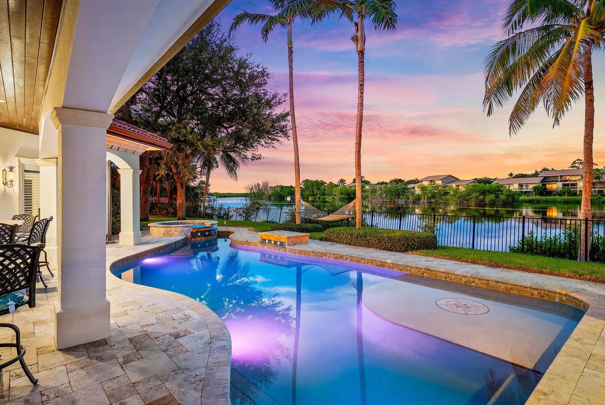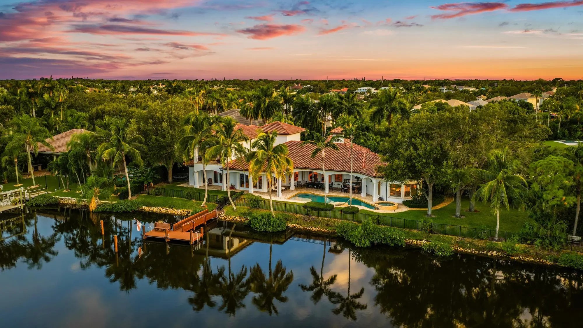 Nestled in the prestigious gated community of Jupiter River Estates--known to locals as the Islands of Jupiter--this extraordinary estate offers unmatched waterfront living. With 280 feet of water frontage both in front and back, nearly every room showcases sweeping water views. A boater's dream, this property offers two private docks--the front dock equipped with a 16,000 lb. lift and floating PWC berth--both providing direct ocean access from their waterways.Situated on just over a half-acre, this custom-built residence spans more than 6,000 square feet of air-conditioned living space. Designed with both elegance and comfort in mind, the home includes 5 bedrooms, 5.5 bathrooms, plus additional rooms perfect for an office, playroom, or flex space.