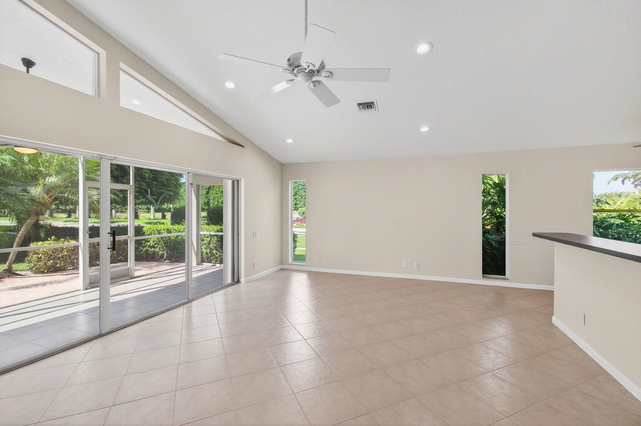 Wake up to gorgeous golf course views in this 2-bedroom plus den Balmoral floor plan home in the desirable Cascades community of Boynton Beach. This corner home offers over 1,800 sq. ft. of open living space with tile flooring throughout and a bright, airy layout that seamlessly connects the living, dining, and kitchen areas.The kitchen features black stainless steel appliances and an eat-in area that overlooks the golf course, making it the perfect spot to enjoy your morning coffee or host casual meals with friends. The split bedroom layout ensures privacy, with the second bedroom and full bath located at the front of the home. The primary suite includes a walk-in closet, double sinks, and a separate tub and shower, creating a serene retreat.Step outside to the large northwest-facing screened-in patio, where you can relax and watch the sunset over the fairways, embracing the best of Florida outdoor living. Key details for this home include a roof from 2009, AC from 2016, and a water heater replaced in November 2020, providing confidence in the home's systems. Cascades is a premier 55+ active adult community located in Boynton Beach, Florida, known for its beautifully maintained grounds, vibrant social scene, and top-tier amenities. Residents enjoy a newly renovated clubhouse featuring a resort-style pool and spa, state-of-the-art fitness center, tennis and pickleball courts, a café, card rooms, and a full calendar of clubs and activities. The community is also home to a non-equity 18-hole golf course, providing the feel of country club living without mandatory membership fees. The monthly HOA fee includes high-speed internet, cable, lawn care, exterior home painting, and access to all community amenitiesoffering exceptional value and peace of mind. Cascades is ideally located near shopping, dining, medical facilities, and major highways, making it one of Palm Beach County's most desirable 55+ communities.