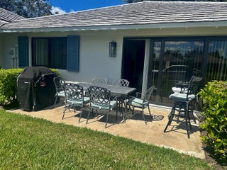 Available April 2026. This tastefully furnished turnkey cottage is located just steps from the heated community pool. Master bedroom features a queen size bed. Second bedroom features two full beds. Kitchen and bathrooms are updated. Indoor dining is a high top, and bar chairs. Outdoor dining is large wrought iron table which seats 6. Back patio enjoyment is complete with a grill.This is your base for fine dining, shopping, golf, fishing, tennis, arts, theater and all that Florida offers. Rentals shorter than 6 months and a day are subject to 13% tourist tax.