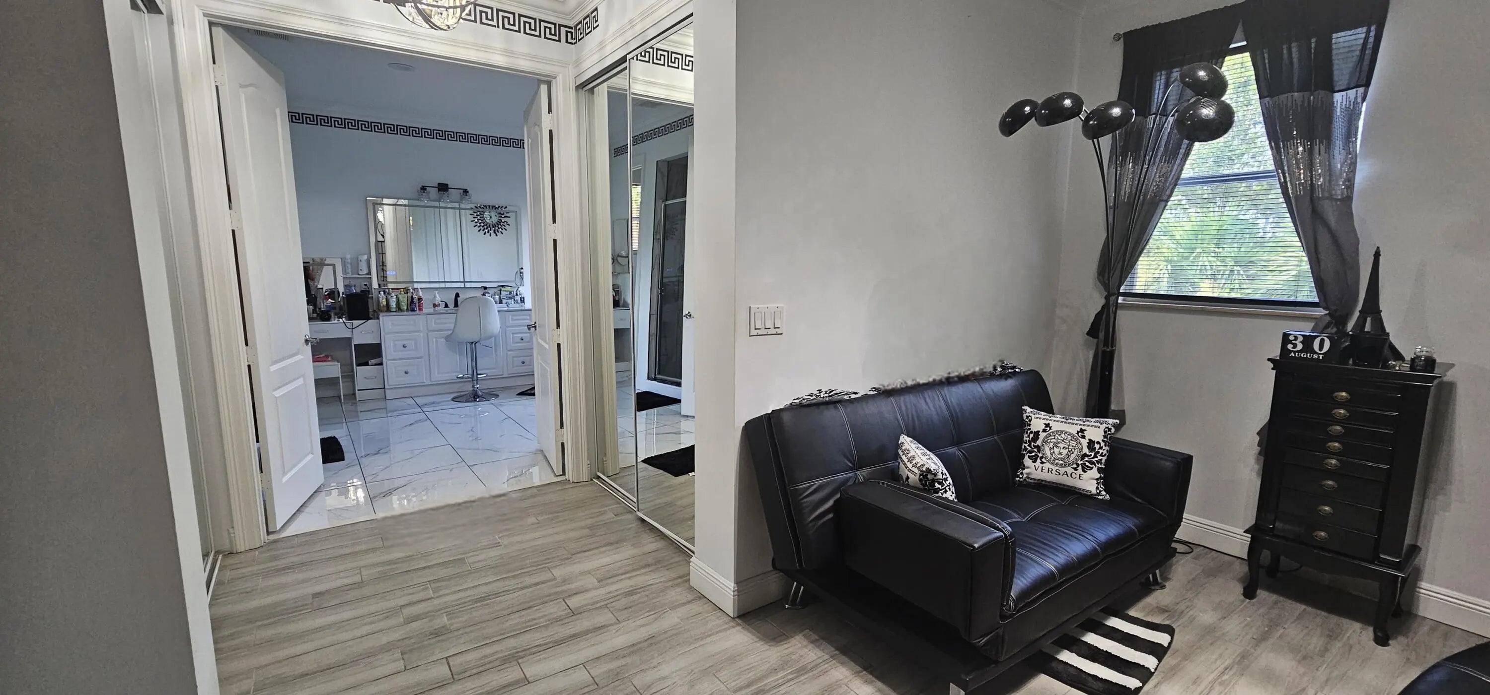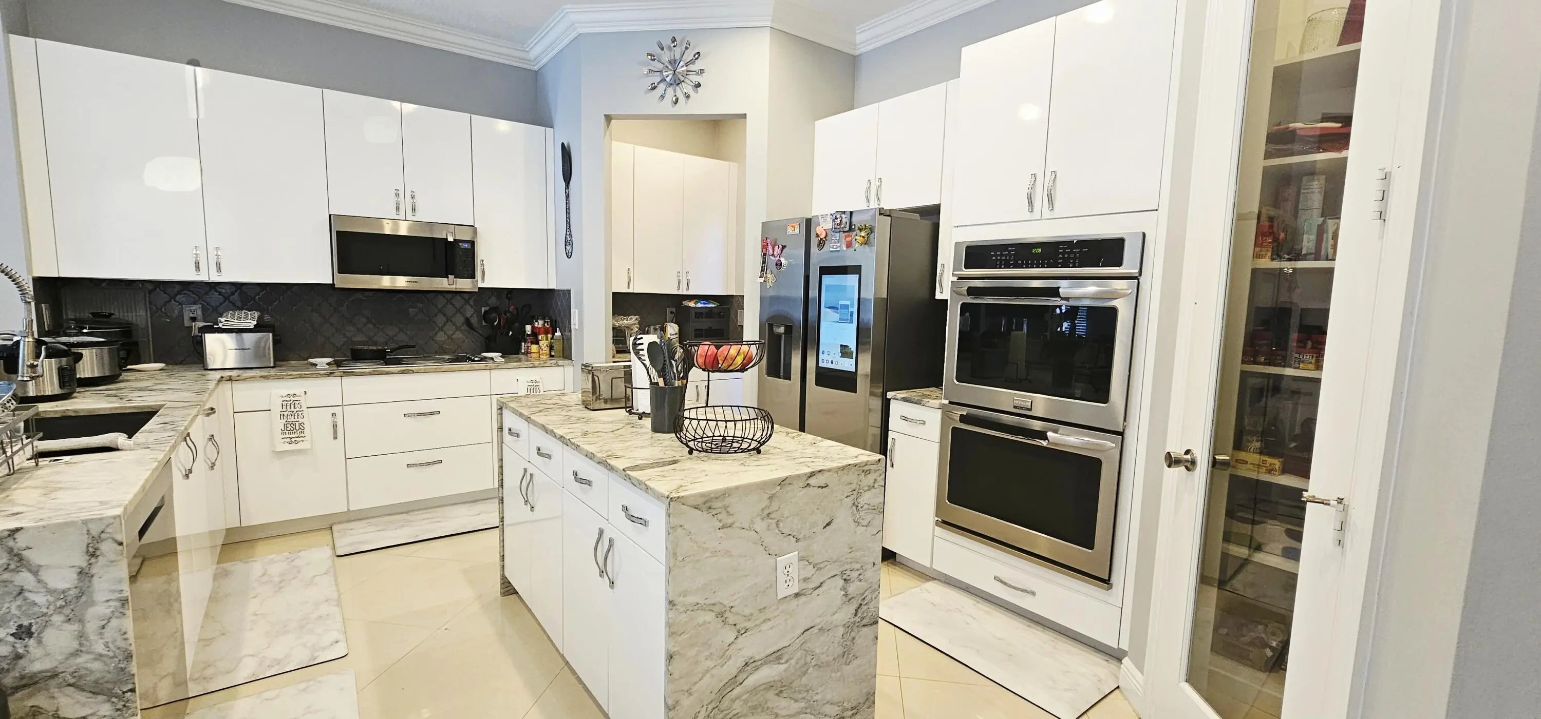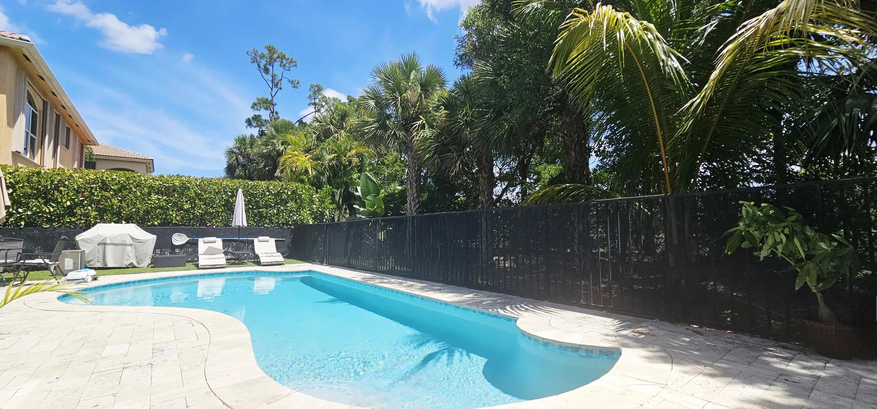 Welcome to 9195 Nugent Trail - a stunning pool home located in the prestigious, gated community of Parkwood Estates at The Estates of Royal Palm. This beautifully maintained residence offers the perfect blend of luxury, comfort, and privacy in the heart of West Palm Beach.Featuring 5 bedrooms, 4 bathrooms, and over 3,500 square feet of living space, this home is designed for both relaxed living and elegant entertaining. Step inside to find soaring ceilings, stylish tile and wood flooring, and abundant natural light throughout.The gourmet kitchen is a chef's dream, complete with granite countertops, stainless steel appliances, a large center island, and a walk-in pantry. The expansive primary suite offers a private retreat with a sitting area, dual walk-in closets, and a