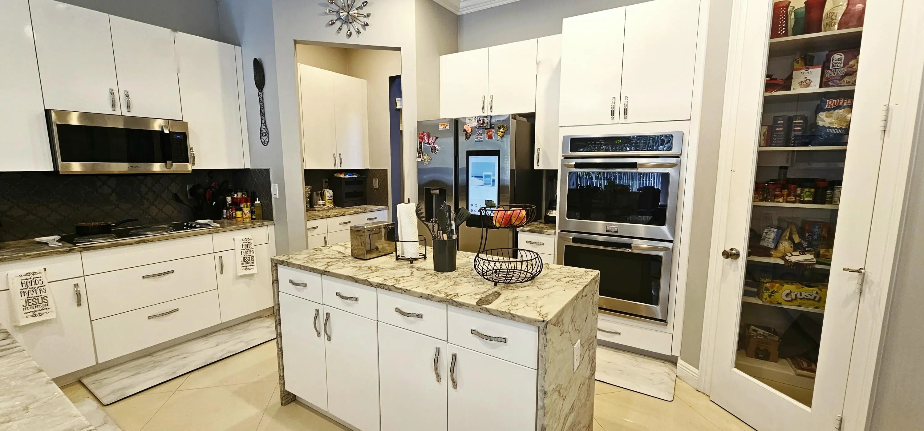 Built-in Shelves, Entry Lvl Lvng Area, Foyer, Kitchen Island, Pantry, Roman Tub, Split Bedroom, Upstairs Living Area, Volume Ceiling, Walk-in Closet, Wet Bar
