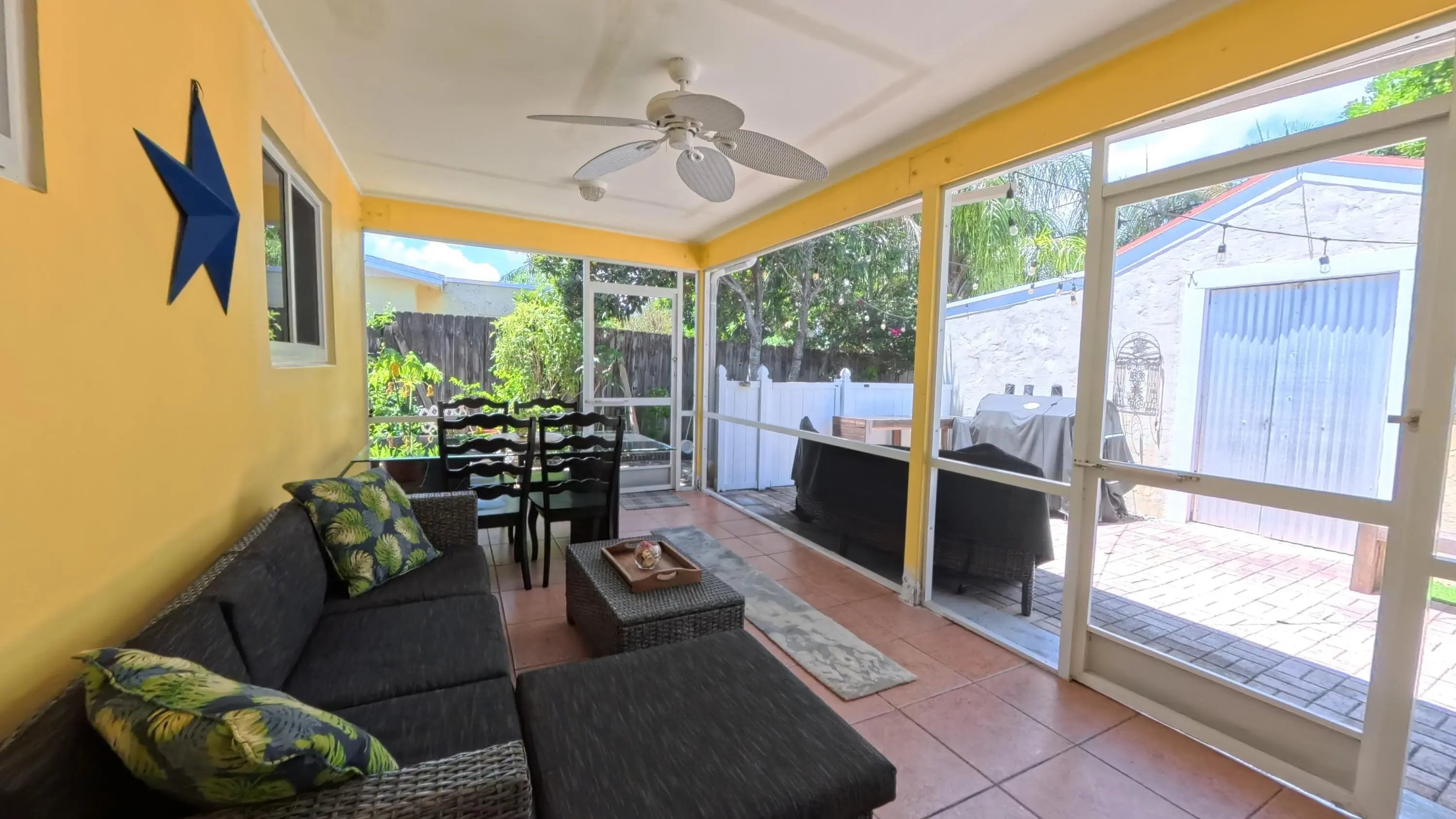Covered Patio, Extra Building, Fence, Fruit Tree(s), Screen Porch, Screened Patio, Shed, Shutters, Zoned Sprinkler
