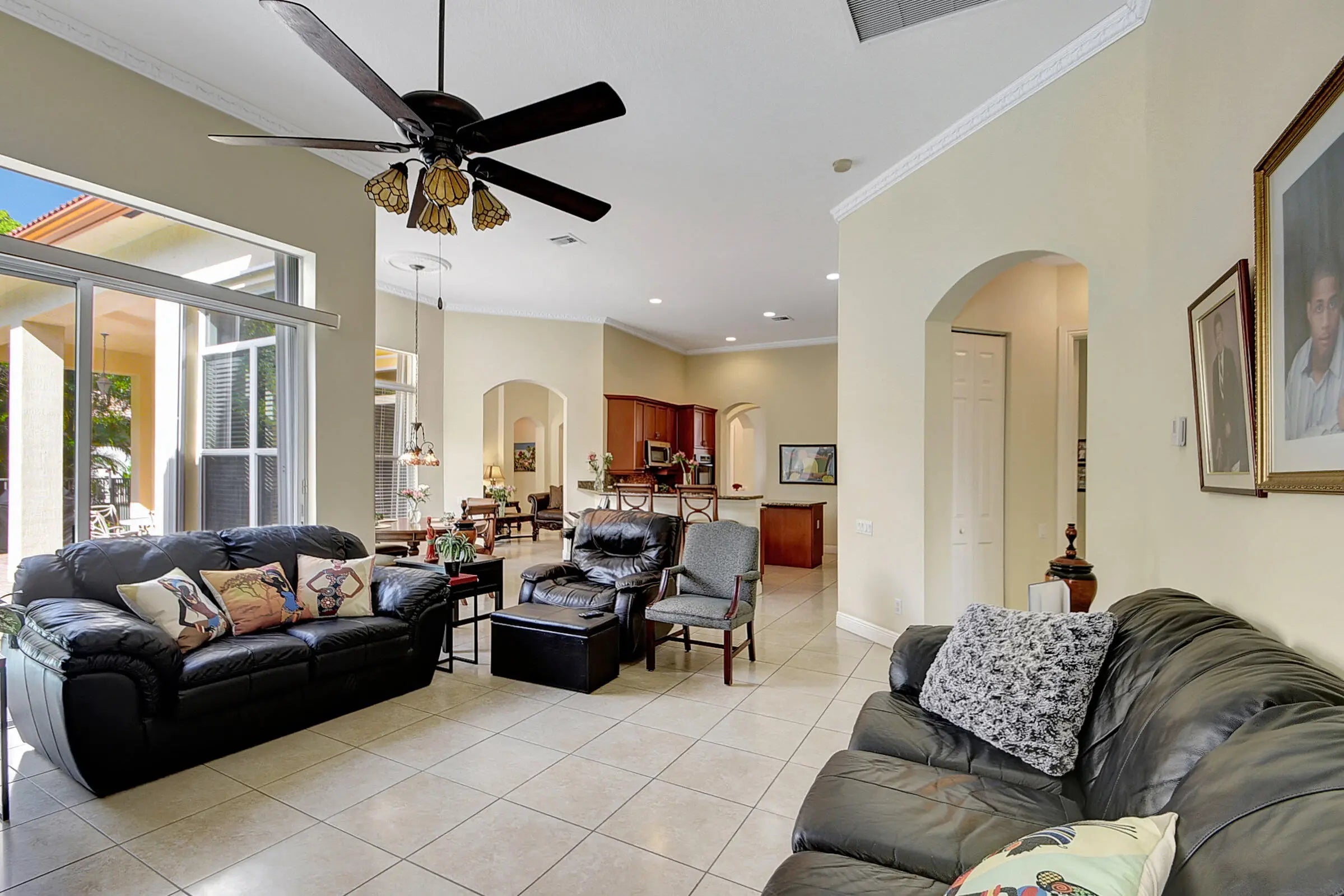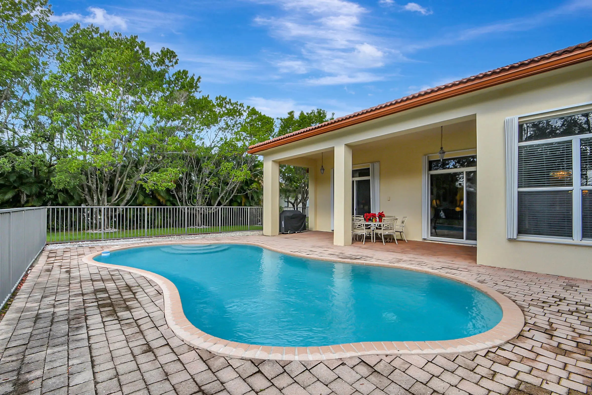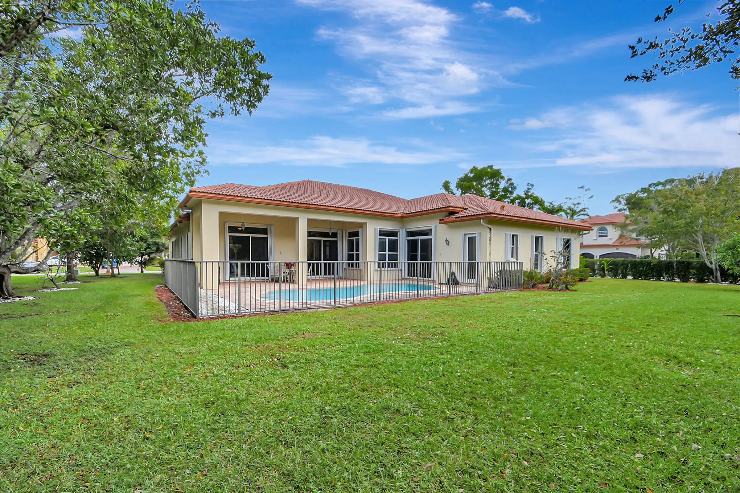 Welcome to this stunning one-story estate home! Situated on a nearly 1/2-acre corner lot, this beautifully maintained and well-appointed residence features 4 bedrooms and 3.5 bathrooms. Step through the elegant double doors into a grand foyer that opens to the formal living and dining rooms. The spacious gourmet kitchen boasts granite countertops, stainless steel appliances, a large pantry, and a breakfast nook--perfect for entertaining while guests relax in the oversized family room. The split-bedroom layout offers privacy and convenience. The expansive master suite includes a luxurious ensuite and direct access to the patio. Three additional bedrooms share a Jack-and-Jill-bathroom, plus a separate cabana bath for added functionality.