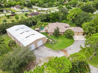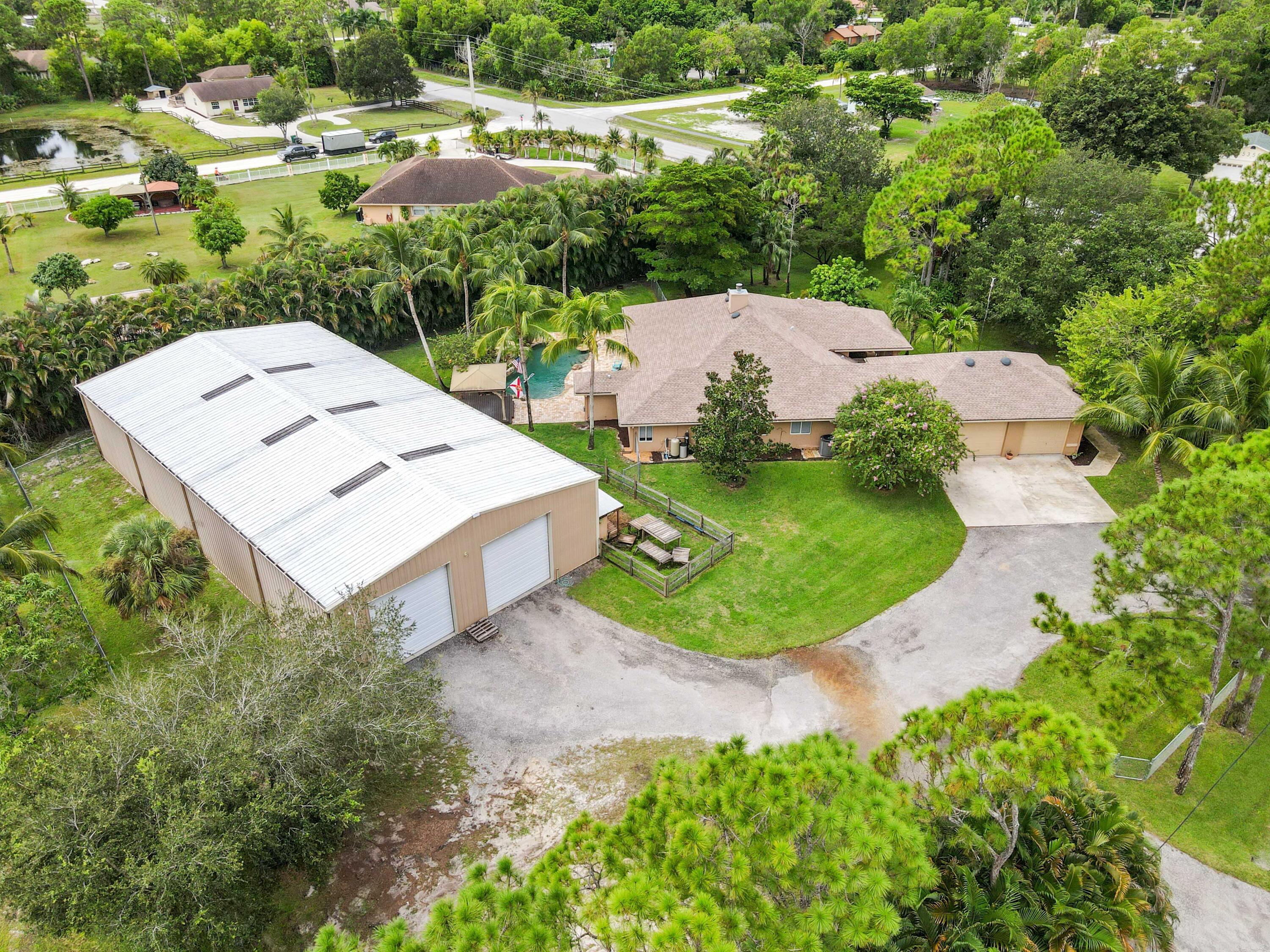 Welcome to this incredible single-family pool home with an oversized attached garage & a huge detached 5,000 sq ft garage/workshop, a true masterpiece of space and serenity, perfectly situated on a prime corner lot spanning 1.75 acres in The Acreage. With a new roof (2023) and no HOA to contend with, you'll enjoy peace of mind along with unparalleled freedom and privacy. This residence features 4 bedrooms and 3 full bathrooms, meticulously designed to offer both comfort and elegance. The spacious and open living area serves as the heart of the home, complete with a cozy fireplace and a sliding door that provides seamless access to the patio.The adjacent formal dining area is perfect for hosting memorable gatherings, while the dedicated laundry room adds to the home's effortless functionality. The kitchen is a chef's dream, boasting a large expanded island, gleaming granite countertops, and an abundance of custom cabinets for all your storage needs. A separate, spacious family room with a stylish cove ceiling offers a perfect space for casual get-togethers or a quiet retreat. The home's thoughtful split-bedroom design ensures privacy for everyone, with each bedroom offering a comfortable sanctuary. The large main bedroom is a luxurious escape, featuring 2 generous walk-in closet and an opulent ensuite bathroom with dual sinks, a separate shower, and a relaxing soaking tub. Step outside and experience your own private resort-style oasis complete with a sparkling pool featuring soothing waterfalls, a gazebo, upgraded travertine decking and a covered patio perfect for outdoor entertaining or quiet evenings by the water. Beyond the oversized attached garage, a detached 5,000 sq ft garage and a separate storage building provide ample space for vehicles, tools, hobbies or could be the perfect space for a business owner. Recent upgrades ensure a turn-key experience, including new flooring (2021), a new gazebo (2021), a newer AC and water heater (2018), and upgraded appliances like the washer, dryer (2019), microwave, and dishwasher (2022 and 2023). Located just minutes from fine shopping, dining, and more, this home offers the perfect blend of country living with urban convenience.