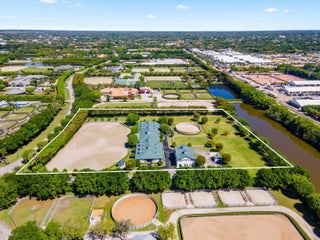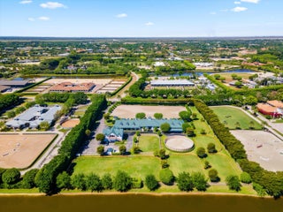This top-tier equestrian estate located in Wellington's Grand Prix Village, features 24 stalls with water access, 4 grooming stalls, 6 large grass paddocks, and a 150x270 Martin Collins arena. Additional highlights include an 8x32 round pen, 3-bay covered wash rack, spacious viewing porch and gazebo. The center aisle barn offers a tack room with full bath, feed room, and ample storage. Owner's lounge features a full kitchen, office, and bathroom. A separate storage building houses equipment and laundry facilities. 2 apartments upstairs feature 3 bedrooms and 3 full bathrooms. With full security, Generac generator, and gated entrances, this farm is move-in ready for serious equestrians.