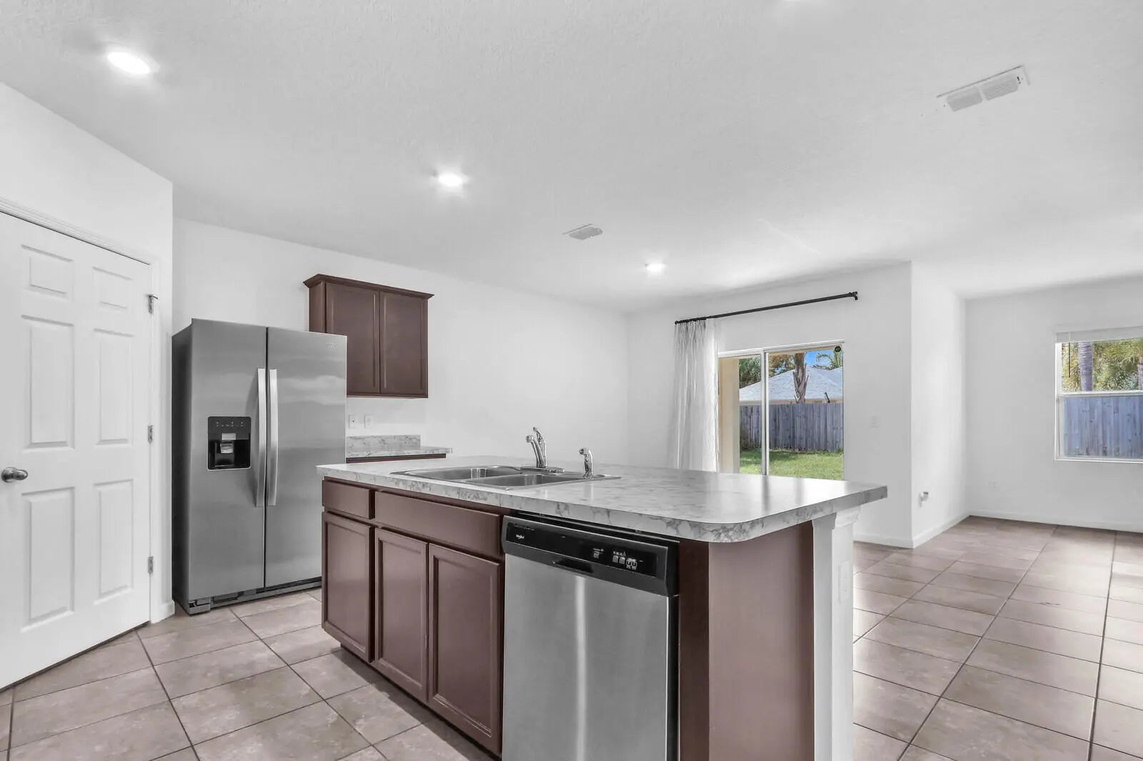Welcome home, neighbor! Live the ultimate Florida lifestyle just minutes from beautiful beaches, top restaurants, and premier shopping. This tech-enabled 4-bedroom, 2-bath home features Smart Home technology, pre-installed ADT security with video doorbell, and complimentary high-speed internet--modern convenience and peace of mind from day one.Built in 2021, this bright single-story home offers an open floor plan perfect for entertaining. The chef's kitchen boasts stainless steel appliances, a spacious island with breakfast bar, and a large pantry. Stylish tile flooring flows throughout, connecting the kitchen, dining, and living areas.The primary suite is your private retreat with a spa-like bathroom featuring a dual-sink vanity, walk-in shower, and private toilet. Three...