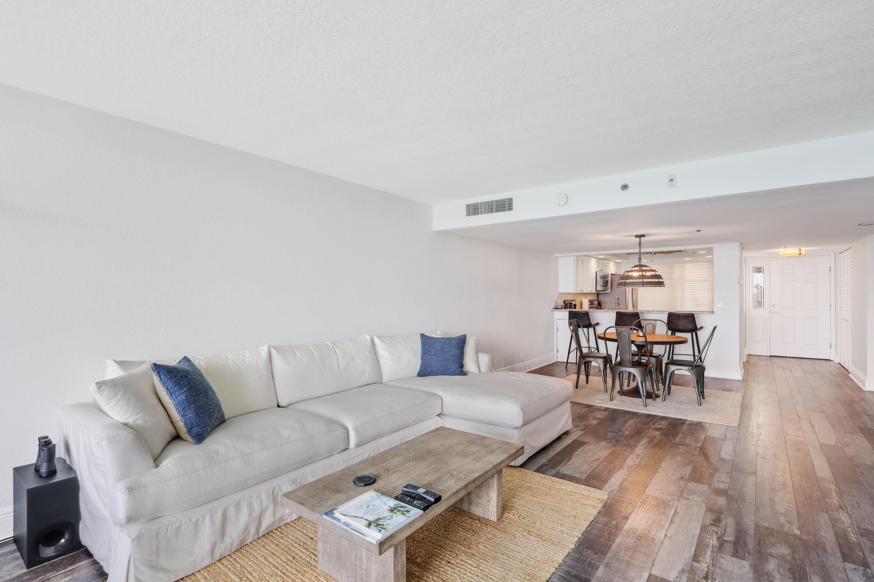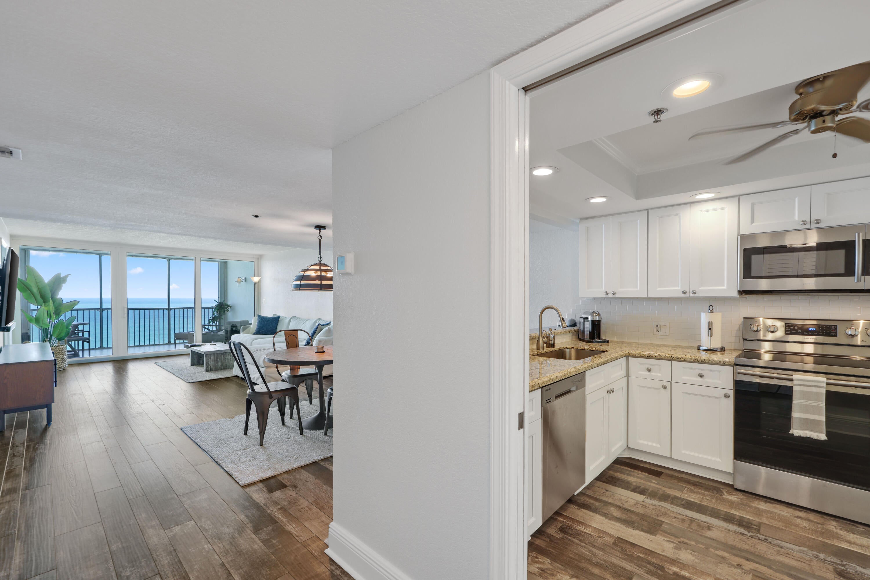 Beautifully renovated 2BR 2BA oceanfront condo''On The Sand''in Juno Beach fully furnished. Features include luxury vinyl flooring, hurricane impact windows & doors, updated baths, hi hats upgraded GE electric panel, RH light fixtures and RH and Arhaus Furniture. Kitchen offers custom wood cabinetry, stainless appliances, farmhouse sink, granite countertops and oversized breakfast bar. Master features dual vanities, walk in closet and sliders out to the balcony. Full size washer/dryer, newer AC and hot water heater. Building offers private beach access,a recently renovated community room and pool deck with covered outdoor areas overlooking the ocean. Well managed and well funded association- no current or pending assessments.