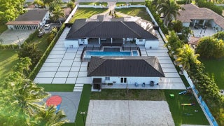 Stunning Mediterranean-style residence on nearly 1 acre, all on one level. This home features vaulted ceilings, a spacious primary suite, gourmet kitchen with island, and private wings with en-suite baths. Perfect for entertaining, it offers a sparkling pool and covered terrace. For sports and outdoor fun, enjoy your own basketball and beach volleyball courts. The circular driveway and grand porte-cochere provide ample parking with comfort and style. A truly unique home that combines elegance, recreation, and space in a prime Miami location.