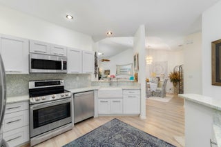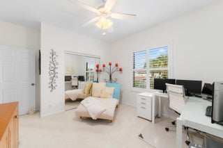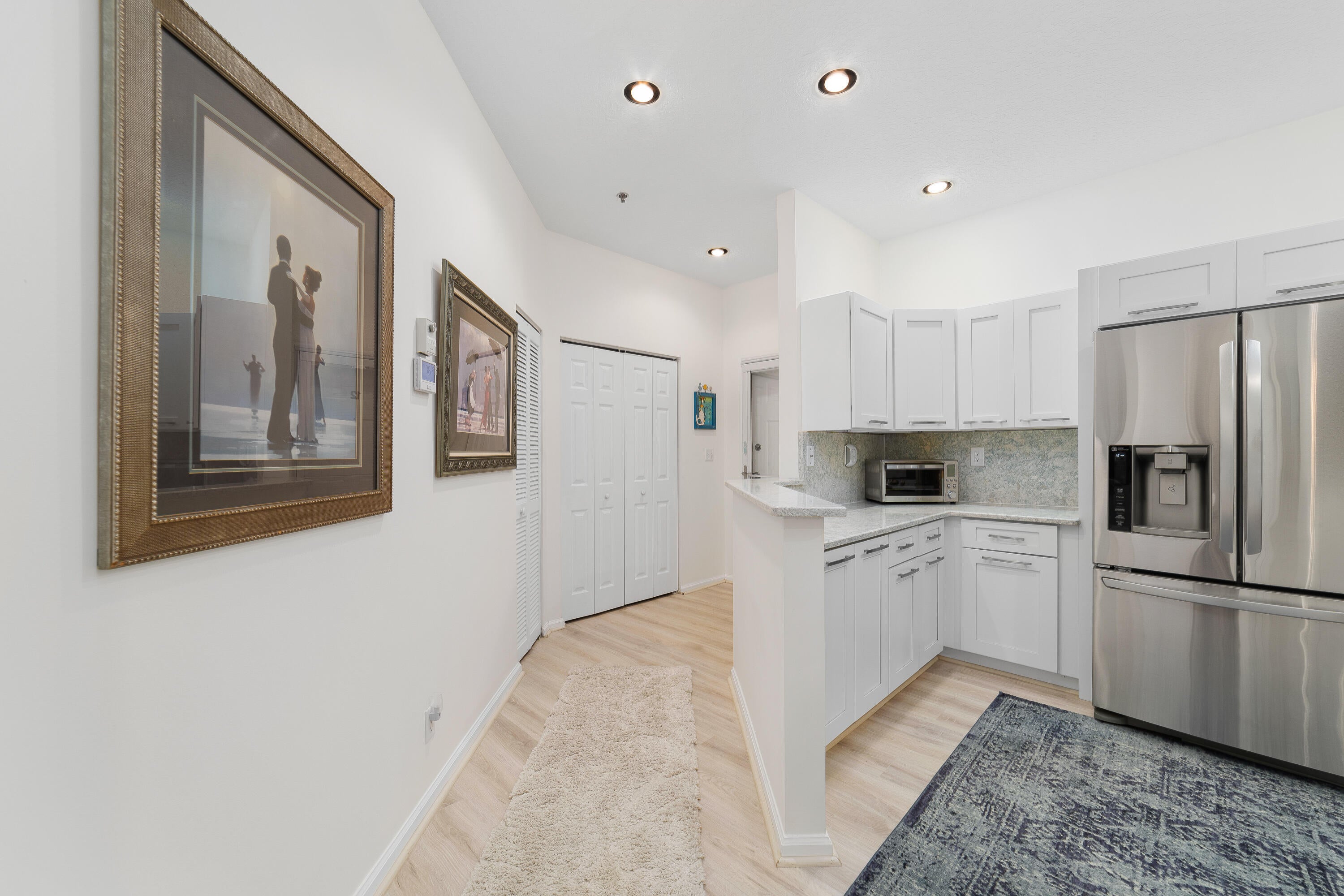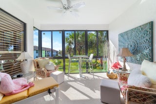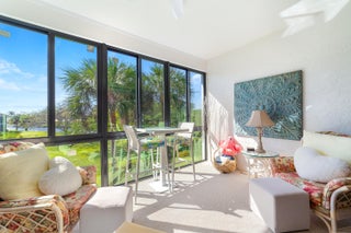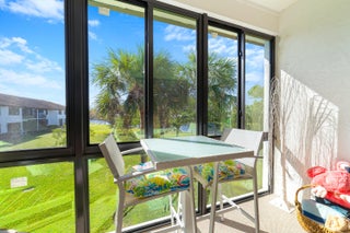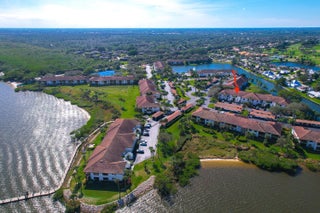Gorgeous 3 bedroom, 2 bathroom condo with breathtaking canal views and soaring cathedral ceilings. Enjoy stunning sunsets from your private balcony. This recently remodeled unit boasts a modern kitchen, fresh paint, new flooring, and custom-built closets. Stay comfortable year-round with a recently replaced HVAC system (2019) and a 2-year-old water heater. Impact glass for all windows and lanai enclosure provide peace of mind and energy efficiency. Plantation shutters in the bedrooms add a touch of elegance. The open floor plan and tasteful decor create a welcoming and stylish living space. Community amenities include a clubhouse, pool, tennis court, and boat dock options for purchase or lease.Plus, enjoy convenient access to the Miles Grant Golf & Country Club next door. This second-floor corner unit also offers a separate storage area for added convenience.