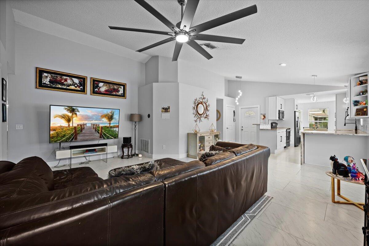 Beautifully renovated and tucked into one of Jupiter's most desirable neighborhoods - without the hassle of an HOA! This single-story gem offers 3 bd/2 ba, plus a versatile den. The oversized kitchen is a true showstopper, featuring crisp white cabinets, SS appliances, and a sleek quartz countertop. High-quality flooring runs throughout the home, tying the spaces together with a clean, stylish finish. The primary suite features a custom bathroom with a dramatic black marble shower with elegant gold accents, while the updated second bathroom offers a sleek, contemporary design. With a NEW ROOF in 2020, and a prime location just minutes from beaches, A-rated schools, shopping, dining, and I-95, this home is move in ready and perfectly situated for enjoying the best of Jupiter living!