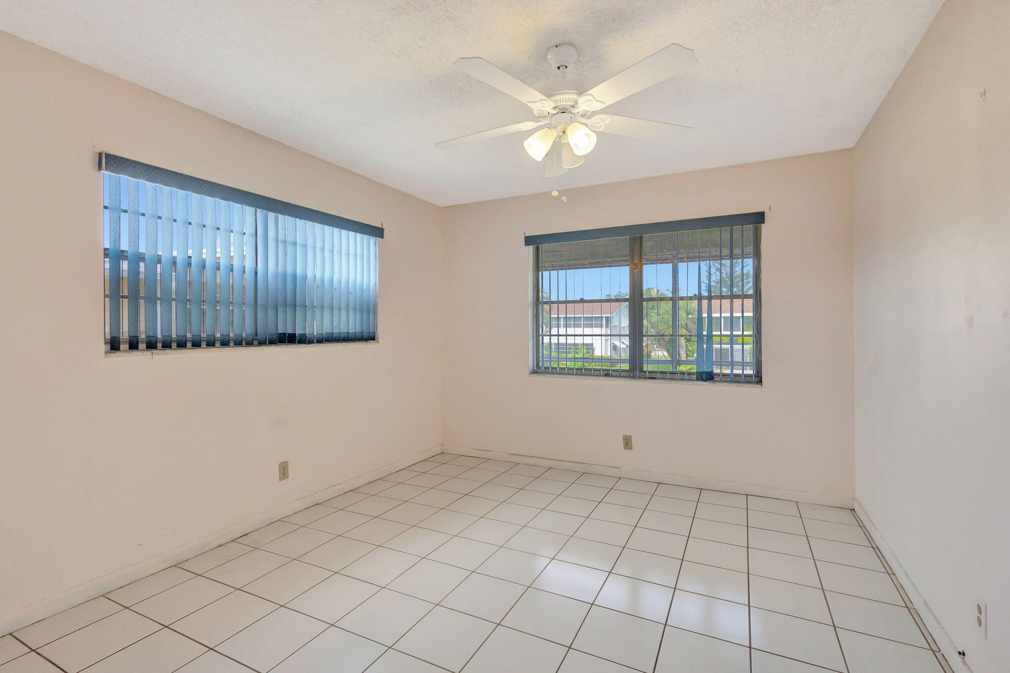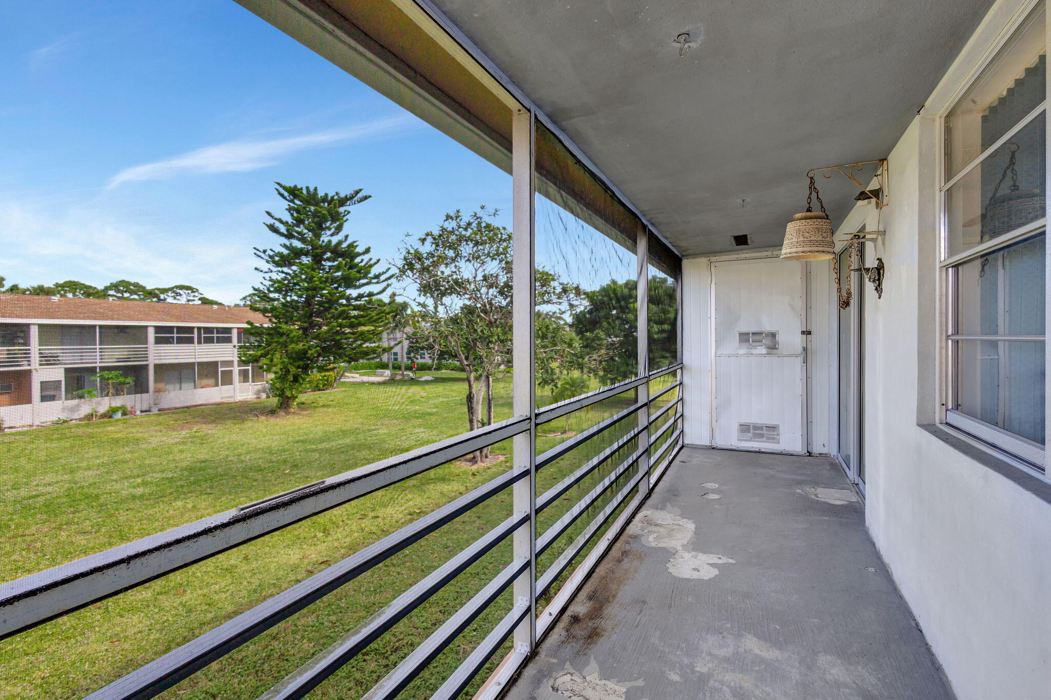 MOVE IN READY SUN FILLED 2 BED 1.5 BATH END CORNER ON SEOND FLOOR,IN BUILDING WITH A LIFT. LOCATED IN THE SOUGHT AFTER CENTURY VILLAGE, A GATED COMMUNITY FOR ADULTS 55+. TILE FLOORING THROUGHOUT, NEUTRAL COLORS, UPDATED BATHROOM. NEWER CENTRAL AIR. WELL MANAGED ASSOCIATION WITH NEW ROOF (6/2023) AND OPEN PATIO TO SIT OUT & RELAX ON. .Roomy closets (one walk-in), screened-in patio, laundry room, assigned parking spot plus visitor parking available; local bus for errands/shopping both within & outside THE VILLAGE. GREAT LOCATION VERY CLOSE TO HASTING FITNESS CENTER WHICH HAS STATE OF THE ART GYM, SWIMMING POOL AND RESISTANCE POOL. COME AND ENJOY RESORT STYLE LIVING. Clubhouse with theater, shows, movies, craft and card rooms, clubs, billiards, aerobicaerobics, yoga, and dance classes. GREAT LOCATION: close to shops, restaurants, PBI airport and beaches.aerobics, yoga, and dance classes. GREAT LOCATION: close to shops, restaurants, PBI airport and beaches.