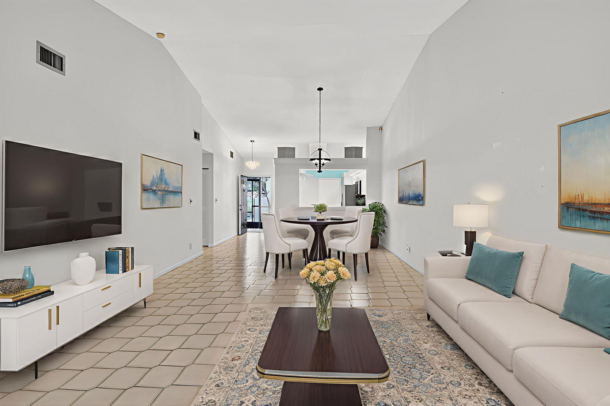 BEST VALUE IN PALM CHASE! Discover this spacious villa offering two bedrooms plus a versatile bonus room, a 290 sq. ft. sunroom, and a one-car garage. Perfectly positioned on a quiet cul-de-sac, this home enjoys exceptional privacy within Palm Chase, a gated HOPA community. A charming private courtyard welcomes guests, while inside, a skylight brightens the kitchen with natural light. Vaulted ceilings in the living and dining areas create an airy, open feel--making the villa live like a single-family home. The sought-after split bedroom floor plan, interior laundry room, and oversized sunroom overlooking peaceful green space add to the appeal. The garage conveniently opens directly to the kitchen, and the driveway accommodates two cars with additional guest parking nearby. At Palm Chase,enjoy carefree living with resort-style amenities without the expense of country club fees. The clubhouse features a temperature-controlled pool, hot tub, fitness center, social clubs, and walking paths, along with pickleball, bocce, and tennis courts. This pet-free community requires approval and annual registration for service or emotional support animals, and there is a two-year waiting period before leasing. Ideally located, Palm Chase is close to places of worship, shopping, dining, and medical facilities, just 25 minutes from PBIA and 15 minutes from the beach. Schedule your showing today and experience the South Florida lifestyle you've always wanted!