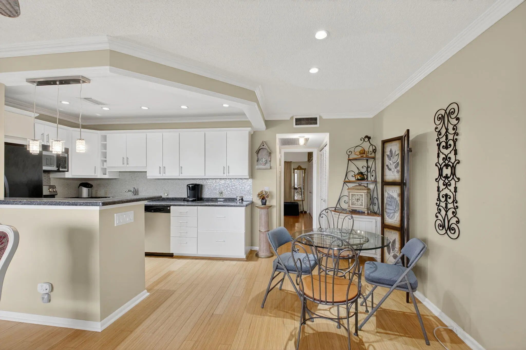 HOME SWEET HOME! Fully renovated penthouse condo right next to the pool. Beautiful granite counter, large open concept kitchen! Warm honey bamboo flooring in living areas. Adorable modern guest bathroom. Lovely master en suite has walk in shower - NO TUB ! Wonderful views-front- water body and lanai - garden view.. Beautiful Ethan Allen furnishings -negotiable. Turnkey ready and so so close to house of worship and clubhouse-must see!