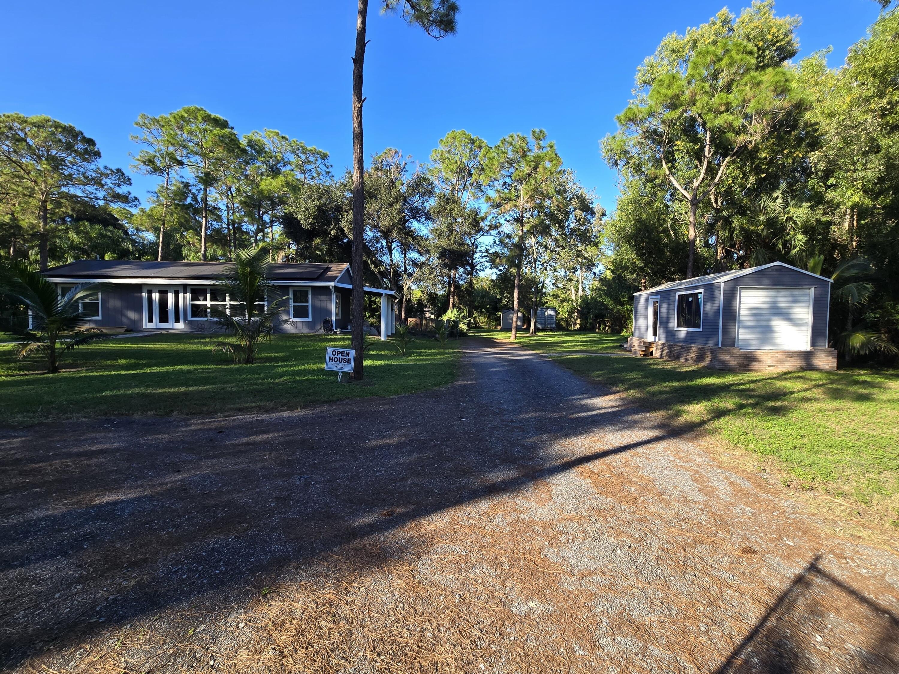 Beautifully remodeled and inviting home featuring 3 bedrooms, 2 bathrooms, and an additional multi-purpose room ideal for a mother-in-law suite, office, 4th bedroom, or efficiency. The home offers a stunning kitchen, bright open spaces, and a warm, welcoming atmosphere throughout.The property includes 4 sheds and 1 container, thoughtfully distributed for various uses. One shed is ready to be finished as a multi-purpose space--such as an efficiency, mother-in-law suite, or office--with kitchen, bathroom, insulation, ceramic floors, and A/C, and can easily be expanded into a larger guest or living area.Additional features include fruit trees, and an area ready to complete a covered parking space for over two cars.Excellent location, offering comfort, versatility, and great potential!