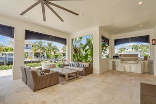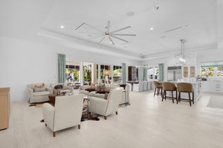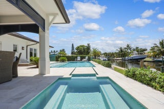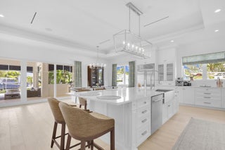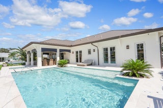 Gorgeous new-construction waterfront home in the heart of Jupiter! Situated on a rare corner lot at the end of a quiet cul-de-sac, this residence offers over 230' of water frontage with direct river, Intracoastal, and ocean access.The spacious 4-bedroom, 4-bath single-story ranch-style home features a split floor plan and Bahamian-inspired design. Highlights include custom mahogany louvered front and garage doors, Bahamian-style shutters and details, high-end impact windows and French doors, French oak beach-style hardwood floors, volume tray ceilings, and vaulted tongue-and-groove ceilings in the foyer and covered patio.The open floor plan is ideal for entertaining, anchored by a chef's kitchen from Palm Beach Cabinet Co. with an oversized island, Wolf propane stove with ... a separate convection steam oven, Sub-Zero French door refrigerator/freezer, and white quartz countertops. All bedrooms include ensuite baths with designer wallpaper, and most feature walk-in closets with built-ins. Guest suites open directly to the backyard and pool area. Additional spaces include a spacious laundry/mudroom with built-in cabinetry and quartz counters, plus smart-home controls for custom lighting, sound system, pool fountains, summer kitchen and more. Relax and enjoy stunning sunsets under the expansive covered patio or while swimming in the propane-heated pool and spa with an outdoor shower. The newly built 230' seawall has one 16,000 lb boat lift and provides room for additional lifts and a large dock. An oversized 2-car garage has an extended ceiling height and car lift. Practical features include dual AC zones, an in-ground propane tank, and is prepared for a 22kw generator (in the garage, but not installed). If you're looking for a newly built, centrally located waterfront home in Jupiter- this is it. Conveniently close to fine dining, shopping, marinas, pristine beaches, and the Jupiter Inlet. Located in a top-rated Palm Beach County school district, near Roger Dean Stadium, and just minutes to Palm Beach International Airport.
