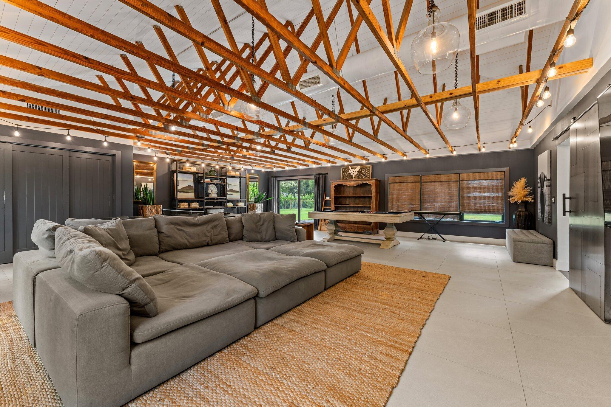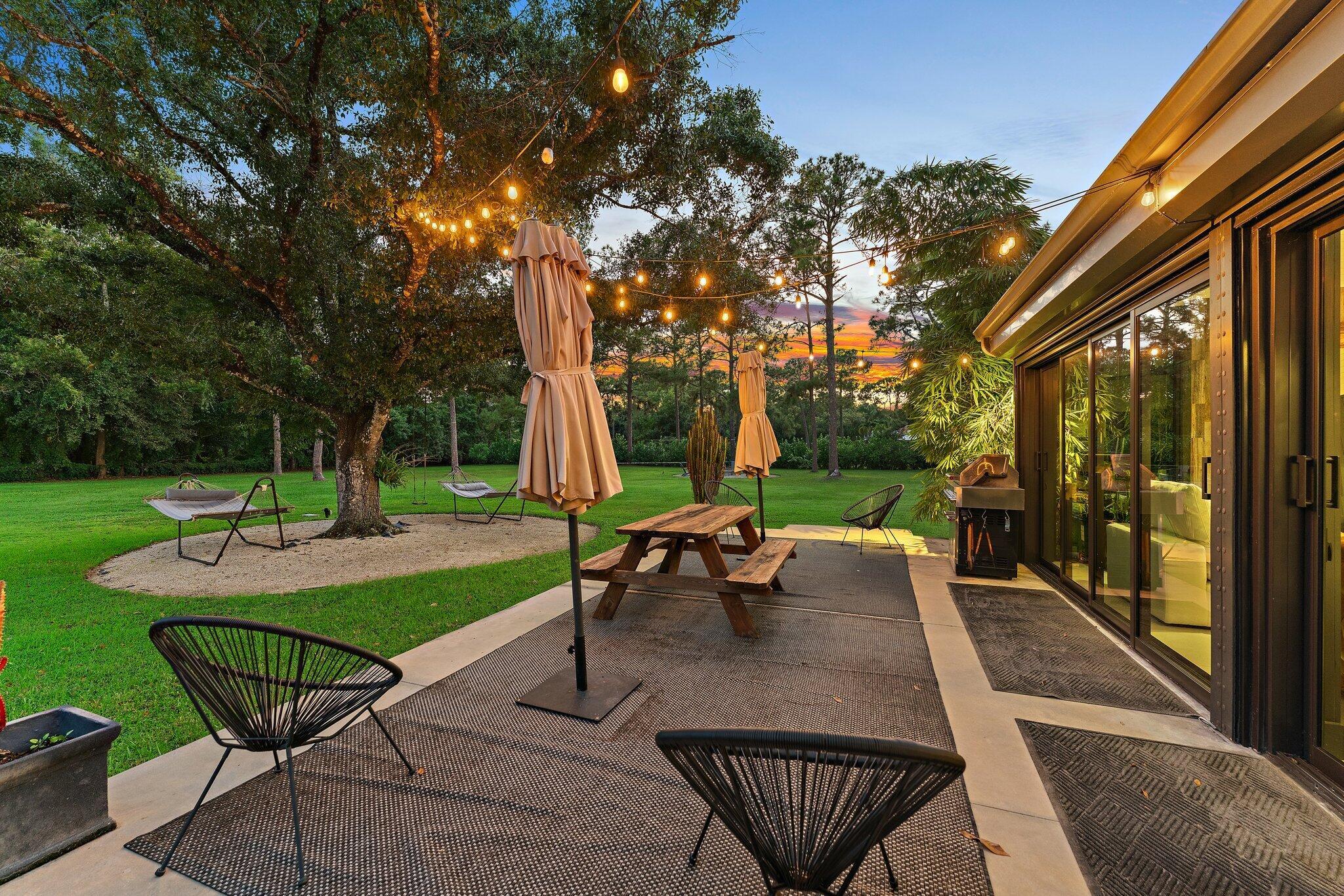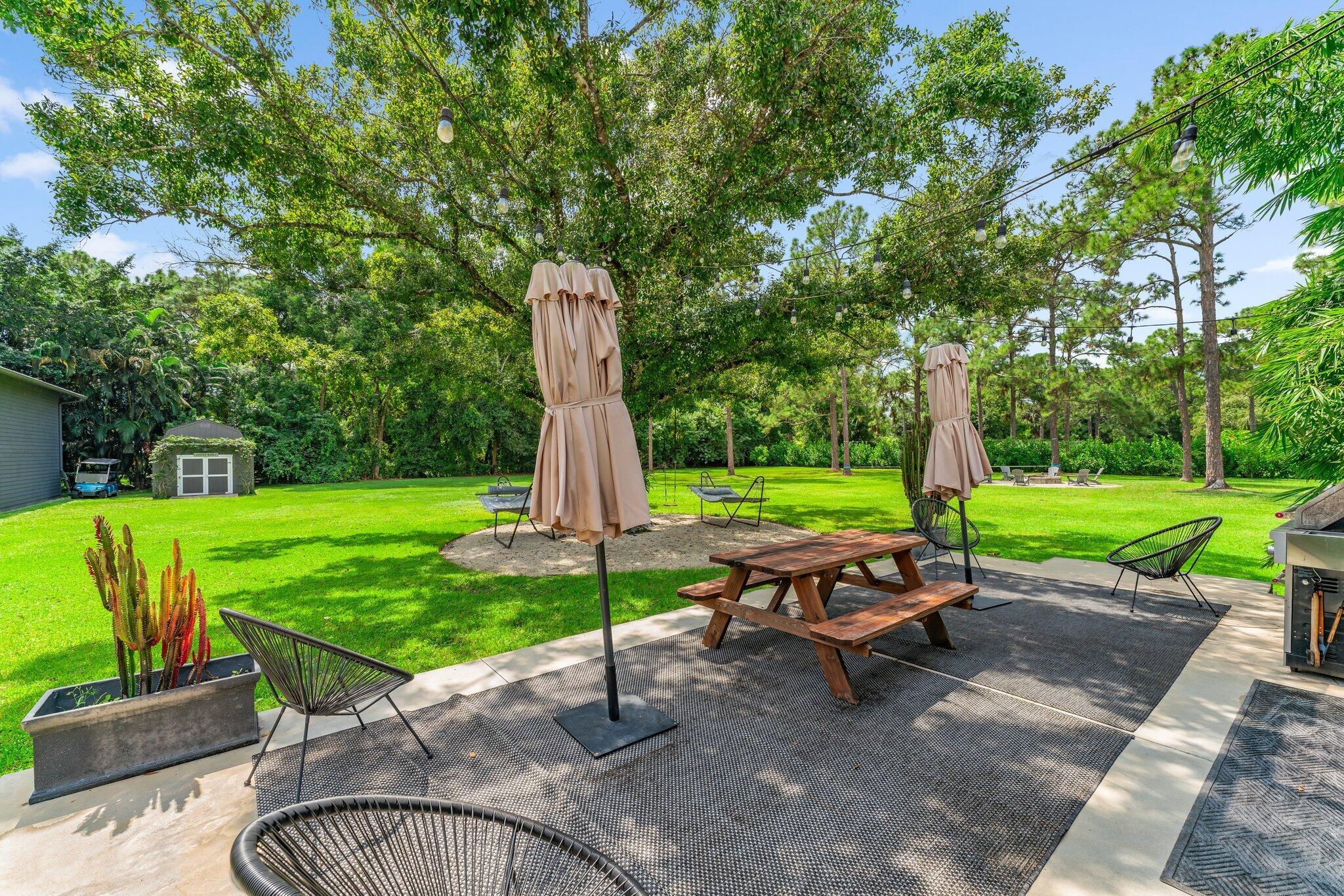 Modern Farmhouse Retreat on 2.5 Acres -- Escape to this stunning 4-bedroom, 3.5-bath modern farmhouse, privately tucked away on 2.5 acres in Jupiter. Fully furnished and thoughtfully appointed, this home is designed for comfort, style, and effortless living--perfect for a seasonal getaway. The interior features a chef's kitchen with premium appliances and a large island, seamlessly connecting to bright living spaces including a family/media room, quiet den, and an impressive 29x29 game room. Upstairs, one bedroom is en suite, while the other two enjoy an exceptionally private Jack-and-Jill layout, with each bedroom having its own water closet and a shared shower/tub. A whole-home reverse osmosis system ensures pristine water throughout. Outdoors, gated access on the east and north sidesthe property enhances privacy and security. Expansive green space, a fire pit for evening gatherings, and a large patio make it easy to enjoy Florida's indoor-outdoor lifestyle. Bi-weekly professional cleaning and full yard care are included, providing a truly turnkey rental experience.