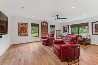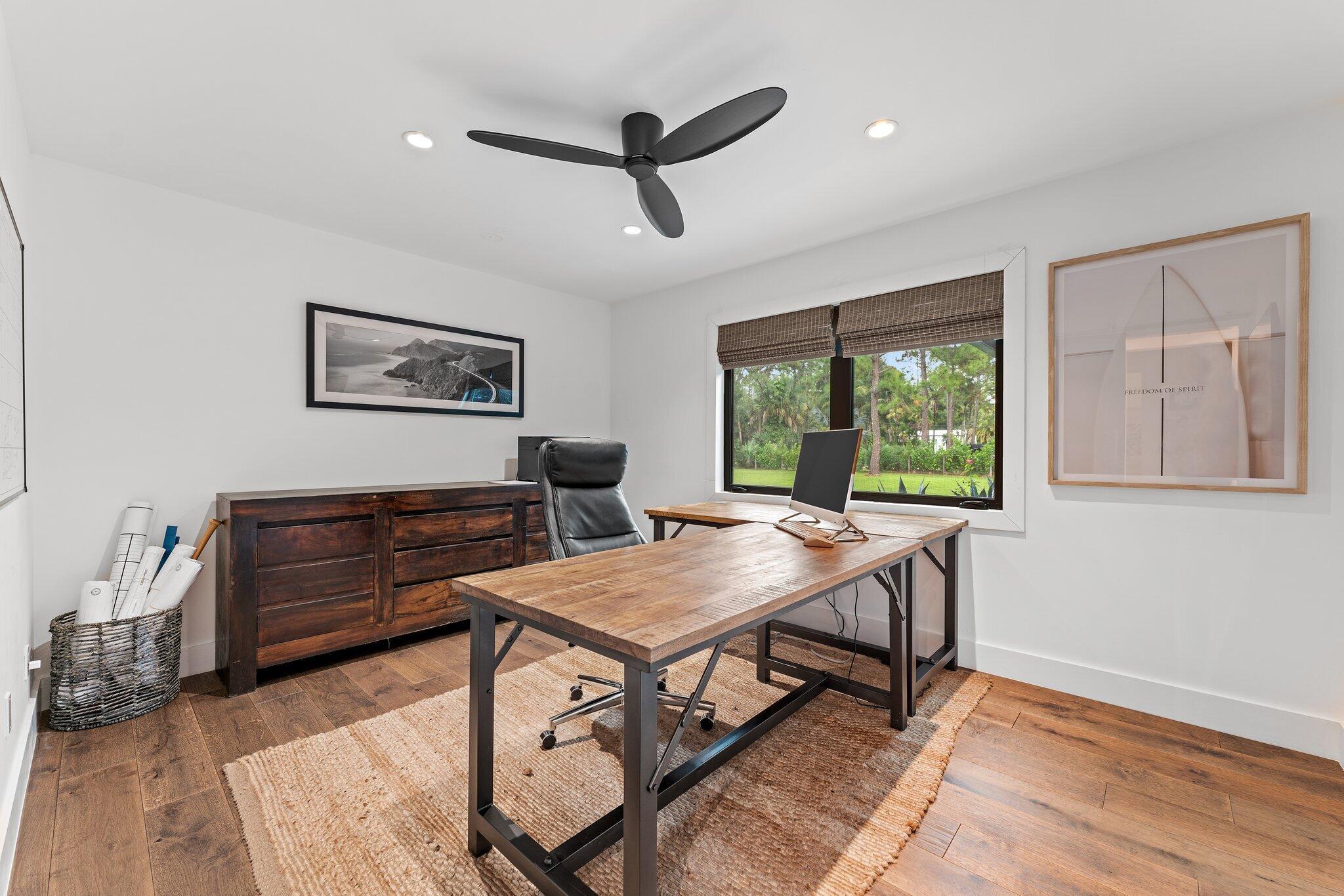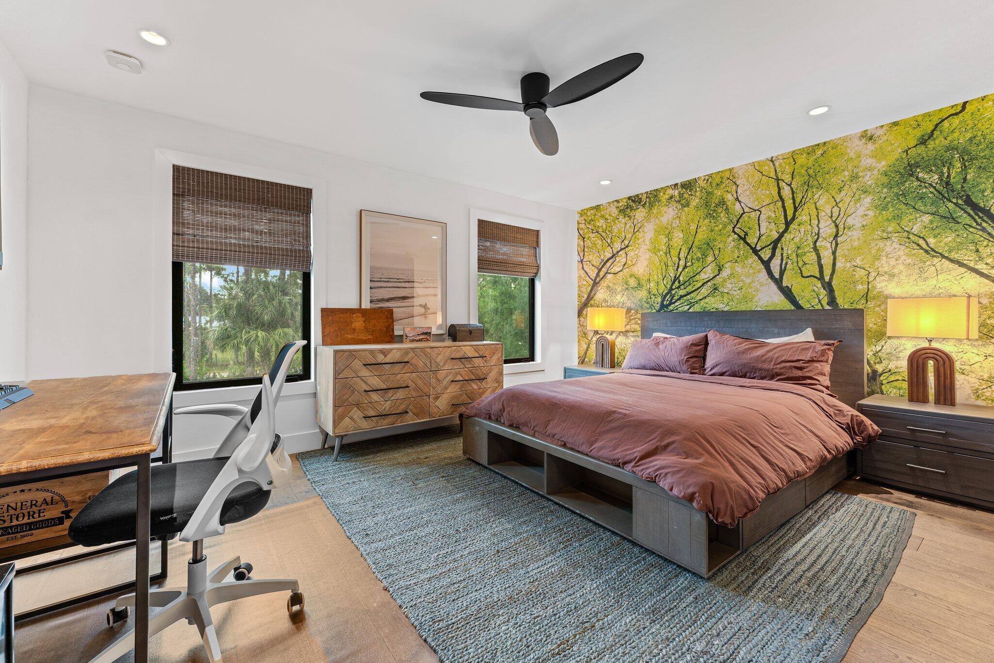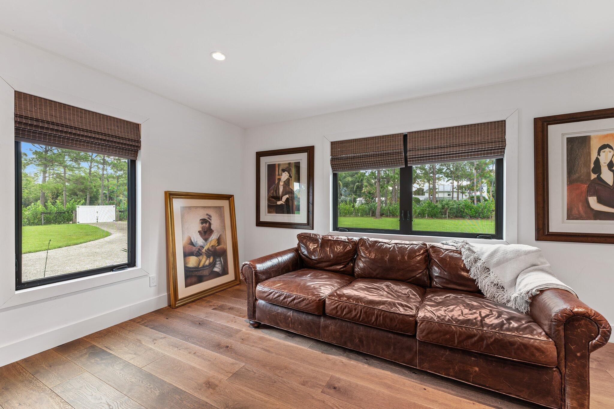 Modern Farmhouse Retreat on 2.5 Acres -- Escape to this stunning 4-bedroom, 3.5-bath modern farmhouse, privately tucked away on 2.5 acres in Jupiter. Fully furnished and thoughtfully appointed, this home is designed for comfort, style, and effortless living--perfect for a seasonal getaway. The interior features a chef's kitchen with premium appliances and a large island, seamlessly connecting to bright living spaces including a family/media room, quiet den, and an impressive 29x29 game room. Upstairs, one bedroom is en suite, while the other two enjoy an exceptionally private Jack-and-Jill layout, with each bedroom having its own water closet and a shared shower/tub. A whole-home reverse osmosis system ensures pristine water throughout. Outdoors, gated access on the east and north sidesthe property enhances privacy and security. Expansive green space, a fire pit for evening gatherings, and a large patio make it easy to enjoy Florida's indoor-outdoor lifestyle. Bi-weekly professional cleaning and full yard care are included, providing a truly turnkey rental experience.