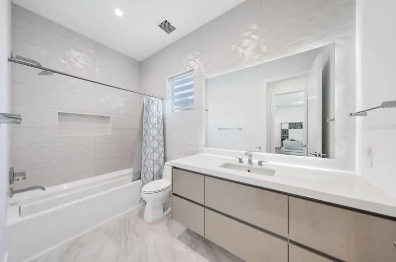 Ultra-Modern East Boca Raton Masterpiece - Steps to the Beach an steps from Mizner! This was built in 2022, designer two-story home delivers modern luxury just minutes from Boca's boutique shops, fine dining, & A-rated schools. Clean lines & elegant finishes define the open layout, w/soaring ceilings, impact glass, & seamless indoor-outdoor flow. The chef's kitchen boasts premium appliances, custom cabinetry, & a waterfall island-perfect for entertaining. The serene primary suite offers a spa-style bath w/soaking tub, rain shower, & luxe details. Outside, unwind in a private backyard oasis with a sleek pool, integrated spa, & lush tropical foliage. The covered lanai features a built-in BBQ & outdoor kitchen, ideal for year-round enjoyment. Unbeatable location & no HOA