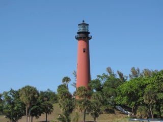 To mark the reef lying off the Jupiter Inlet, Congress in 1853 appropriated $35,000 to construct a lighthouse. At the top of the Jupiter Lighthouse, you can see the Loxahatchee River.
